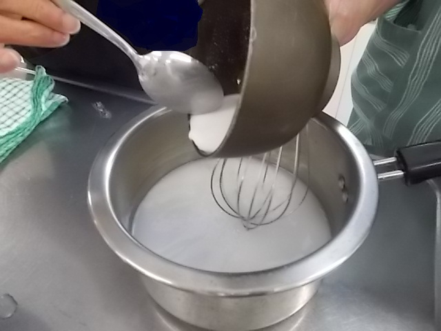 それを火にかけて透明でトロトロになるまで混ぜ合わせます。