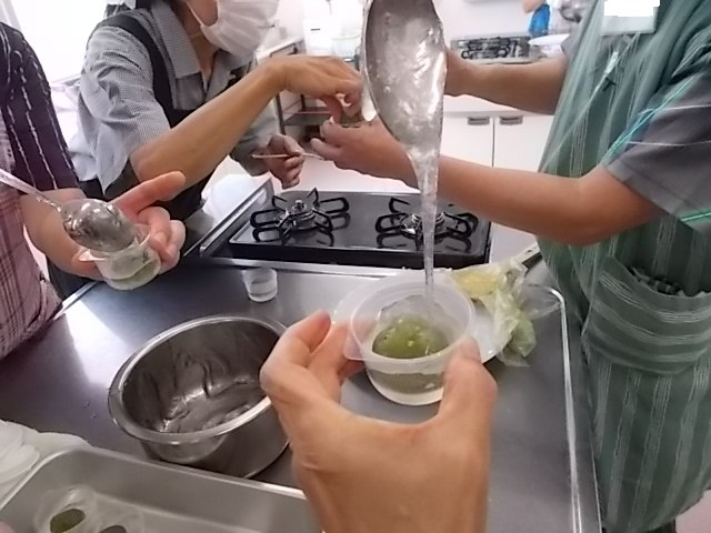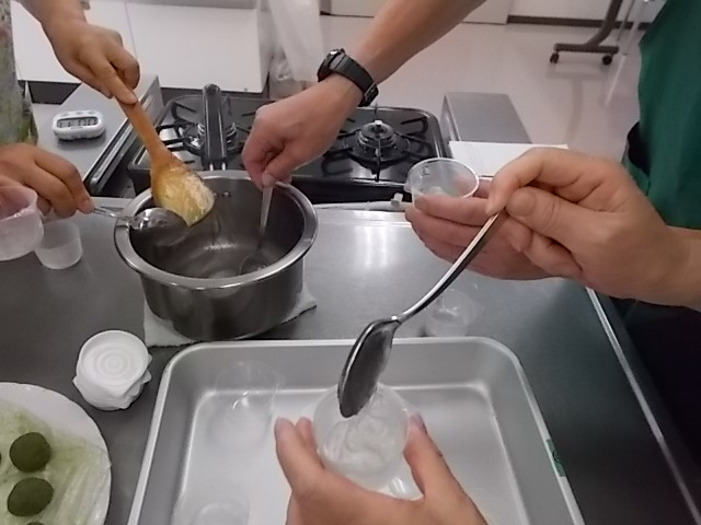 今日は暑い日に涼しい抹茶餡を使った「水まんじゅう」を作りました。