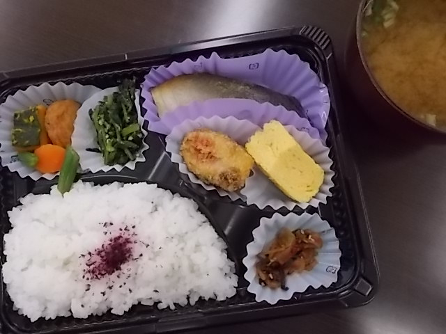 副菜は煮物、ちくわ明太フライ、玉子焼き、おひたしなど