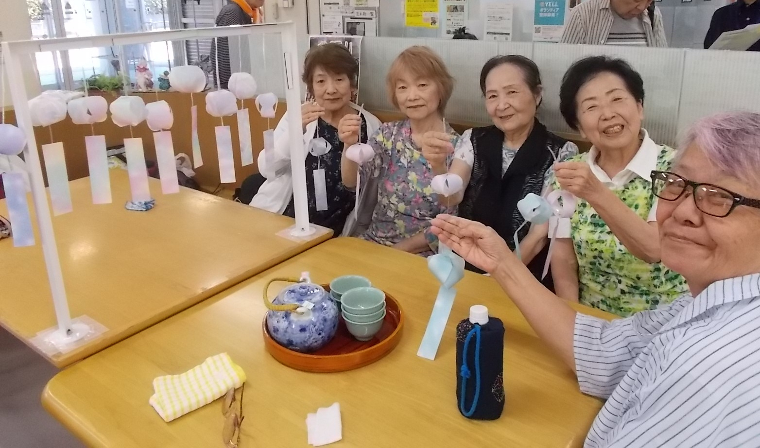 来たる7月6日・日曜日に開催される「夏祭り」の会場に飾る風鈴をボランティアさんと作りました。