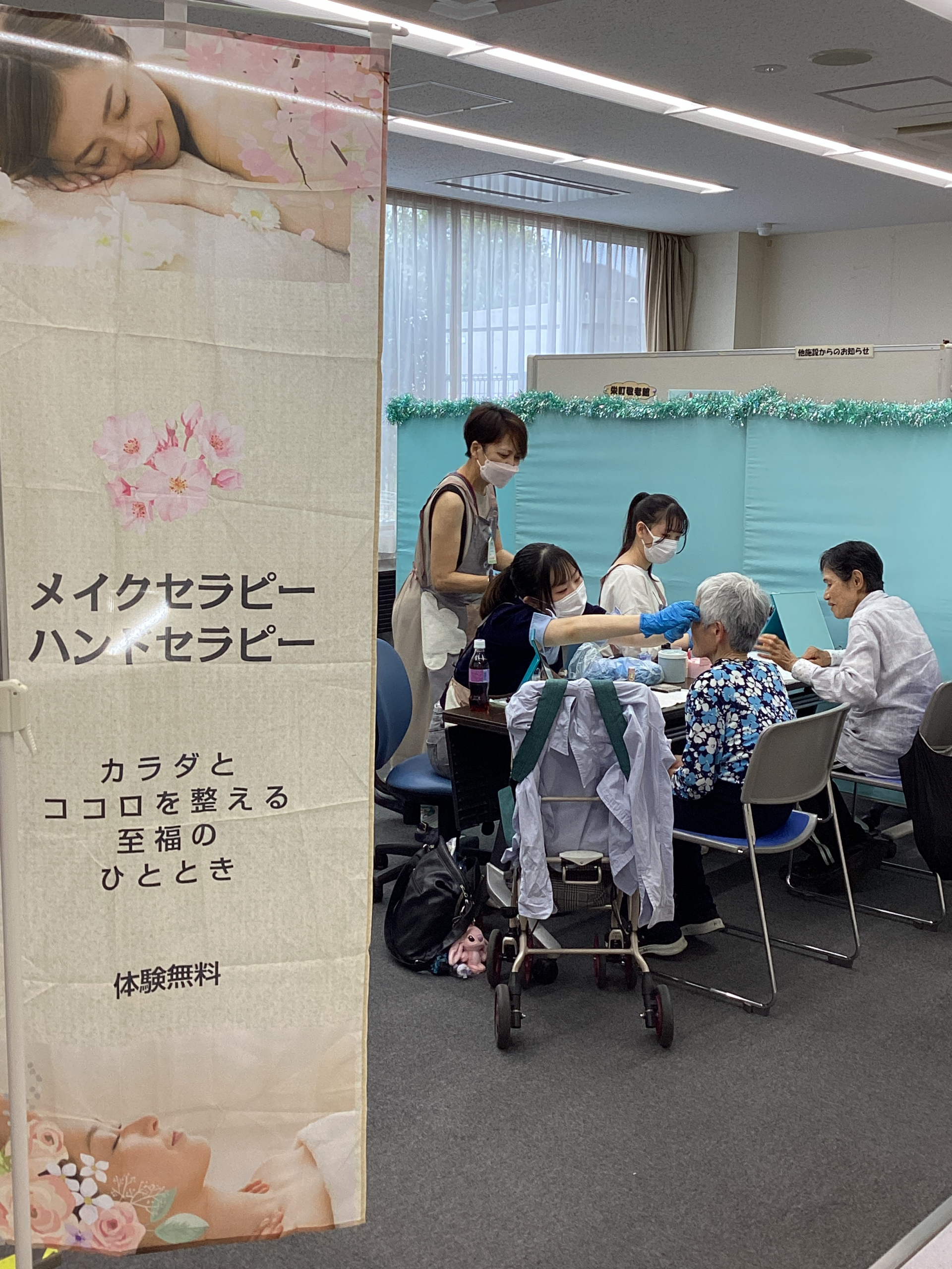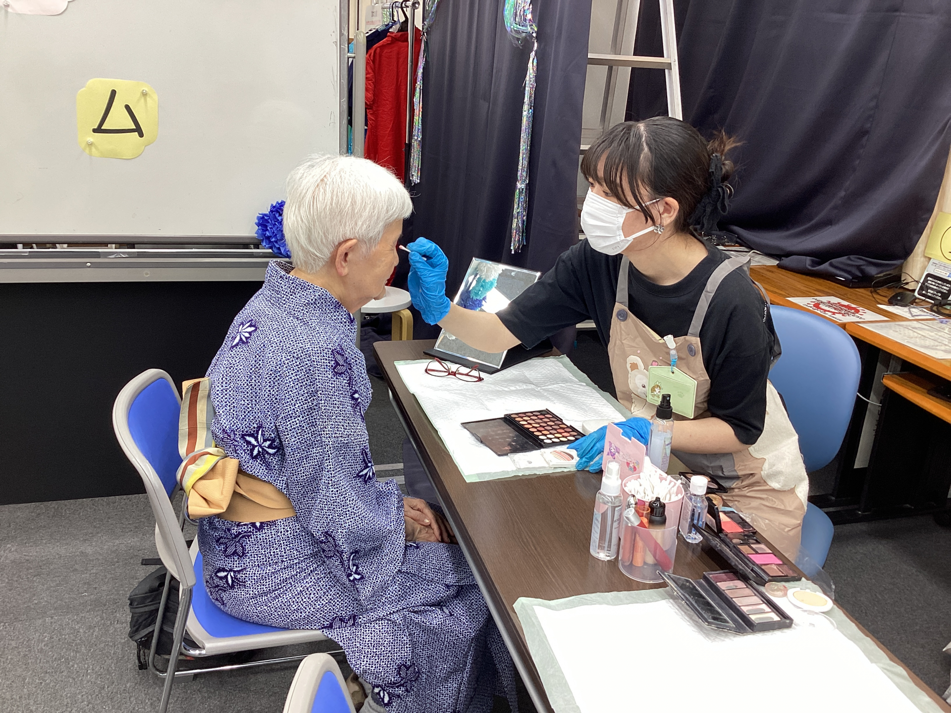 盆踊り前にはぜひこちらでメイクを!!東京医療保健大学の先生と学生の方がメイクをしてくださります。