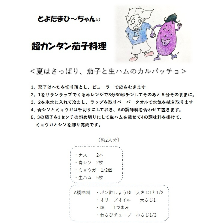 4月下旬に植えた苗が立派な茄子になりました。今回はこのとれたて茄子を使ってお料理をします。