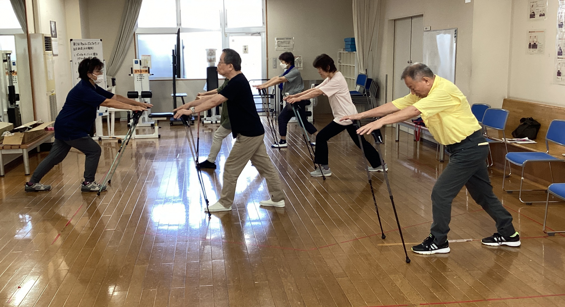 受講した皆様からは、「もっとやりたいので定例の体操にしてほしい」「ポールがあることで転倒を気にしないで安心してしっかり体操が出来る」「自分の体力に合わせて運動が出来る」