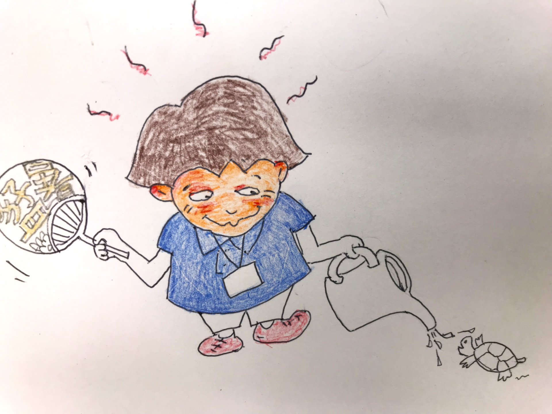 身体が暑さで壊れる前に、早めの給水をしましょう~ 目安は1時間にコップ一杯分の水をゆっくり消費する位です
