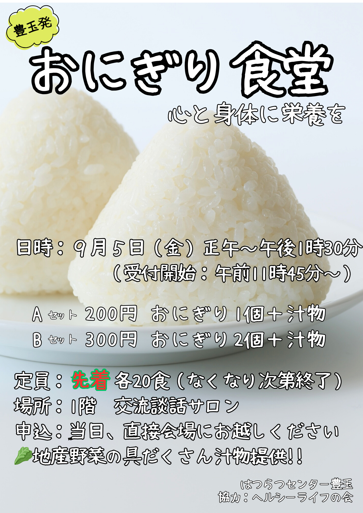 おにぎり食堂 9月5日(金)正午~ 開催いたします!!