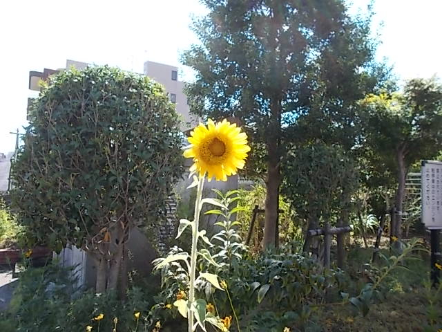 こぼれ種のひまわりも可愛く元気に咲いています。