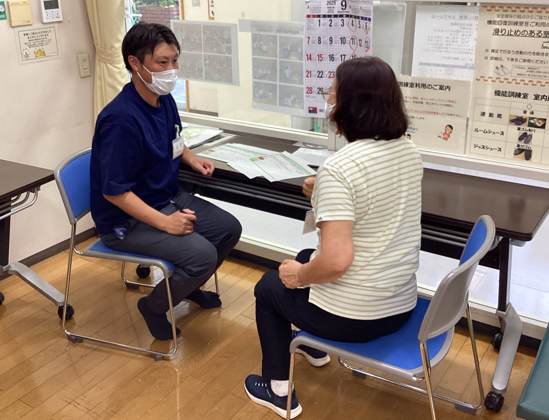初日は体力測定5種目と健康運動看護師と理学療法士による個別面談を行い、現在の自分の身体を知り7か月後の終了時までの目標を考えて頂きます。