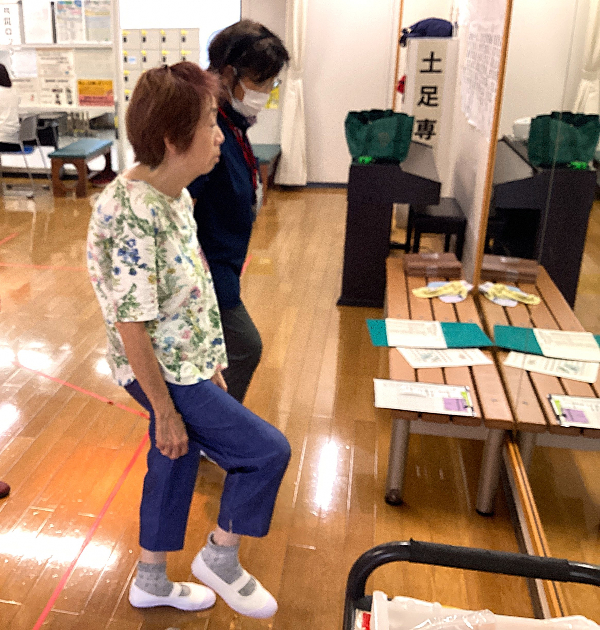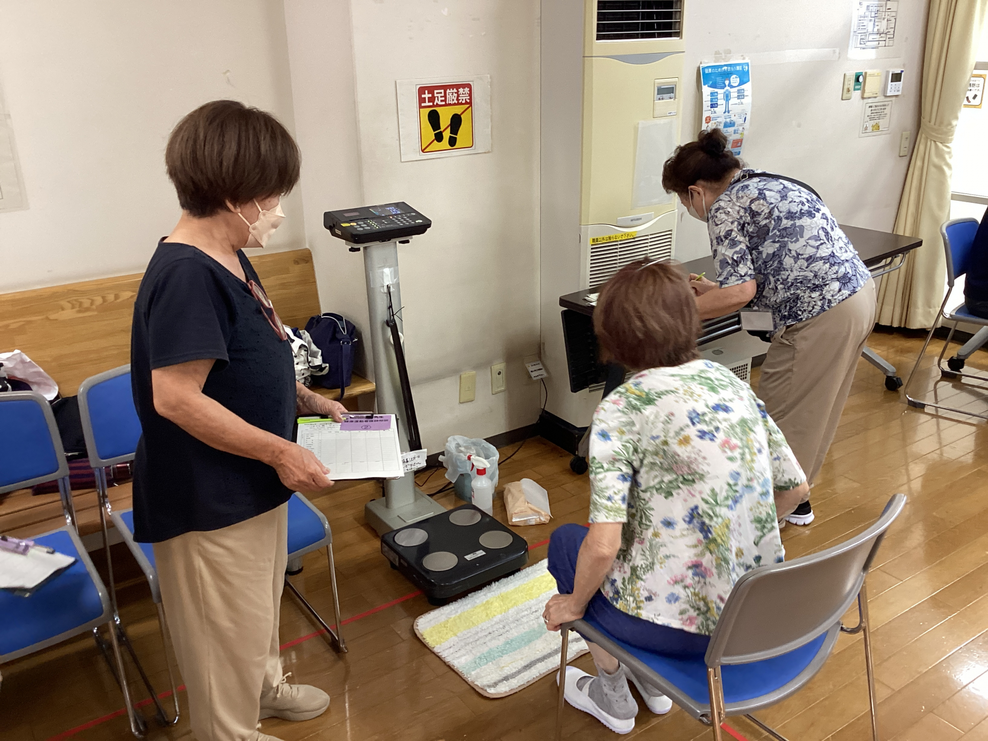 血圧測定と体組成計測定後は、体力測定5種目【握力・開眼片足立・T&G・5回立ち上がり・5m歩行】を行いました。