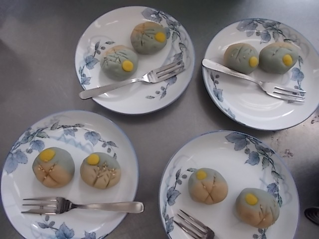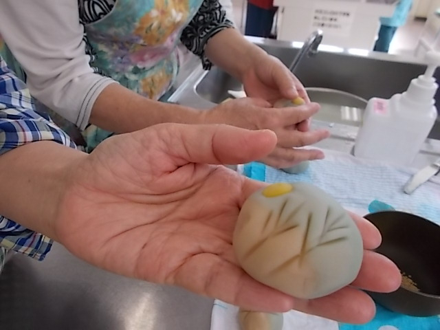 形が出来たらお月様・ススキを描いて「練り切り~お月見~」の出来上がりです。