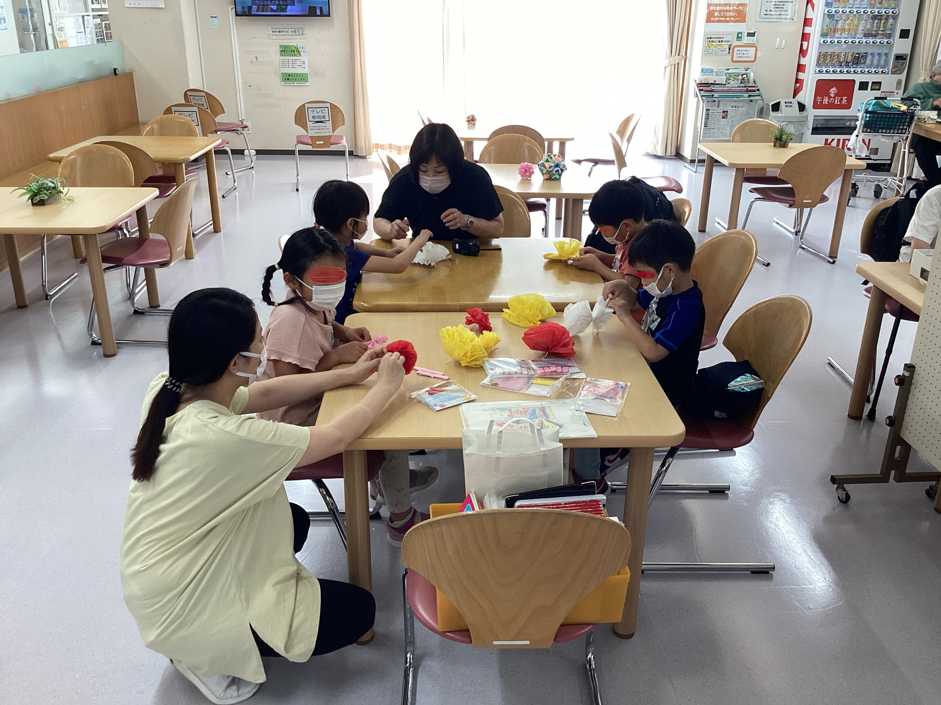 24日とは違う園児様たちで、看板の色塗りやペーパーフラワーを一緒に作って頂いたり
