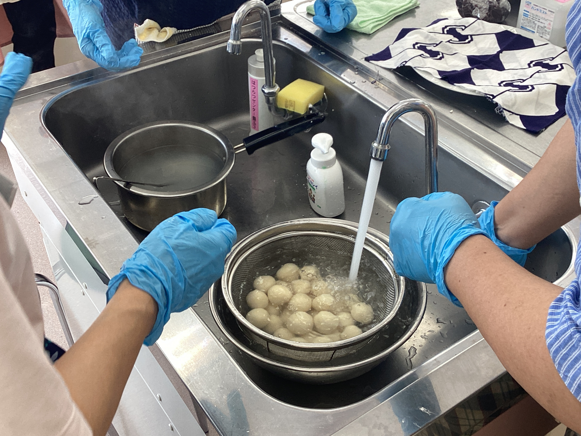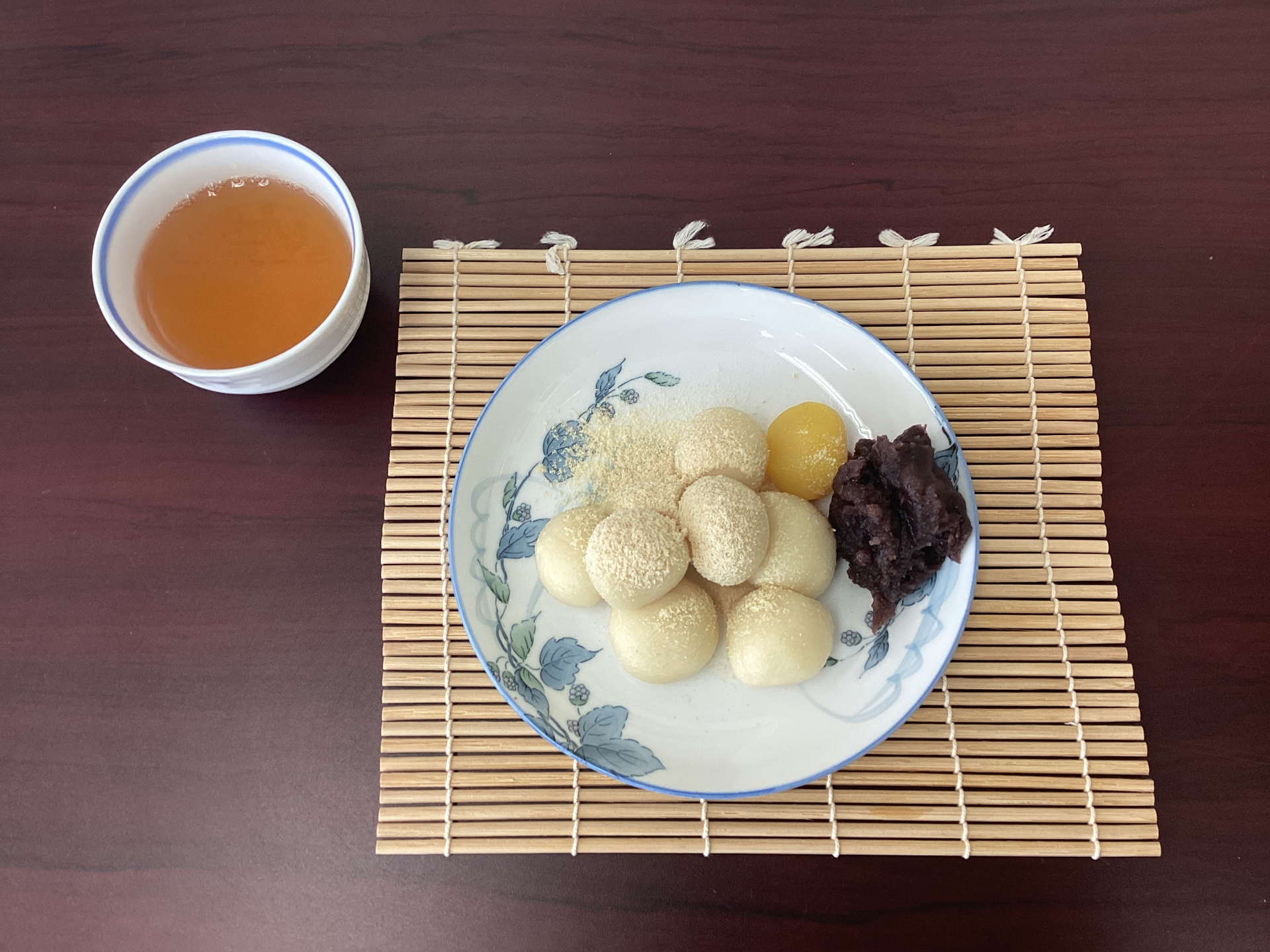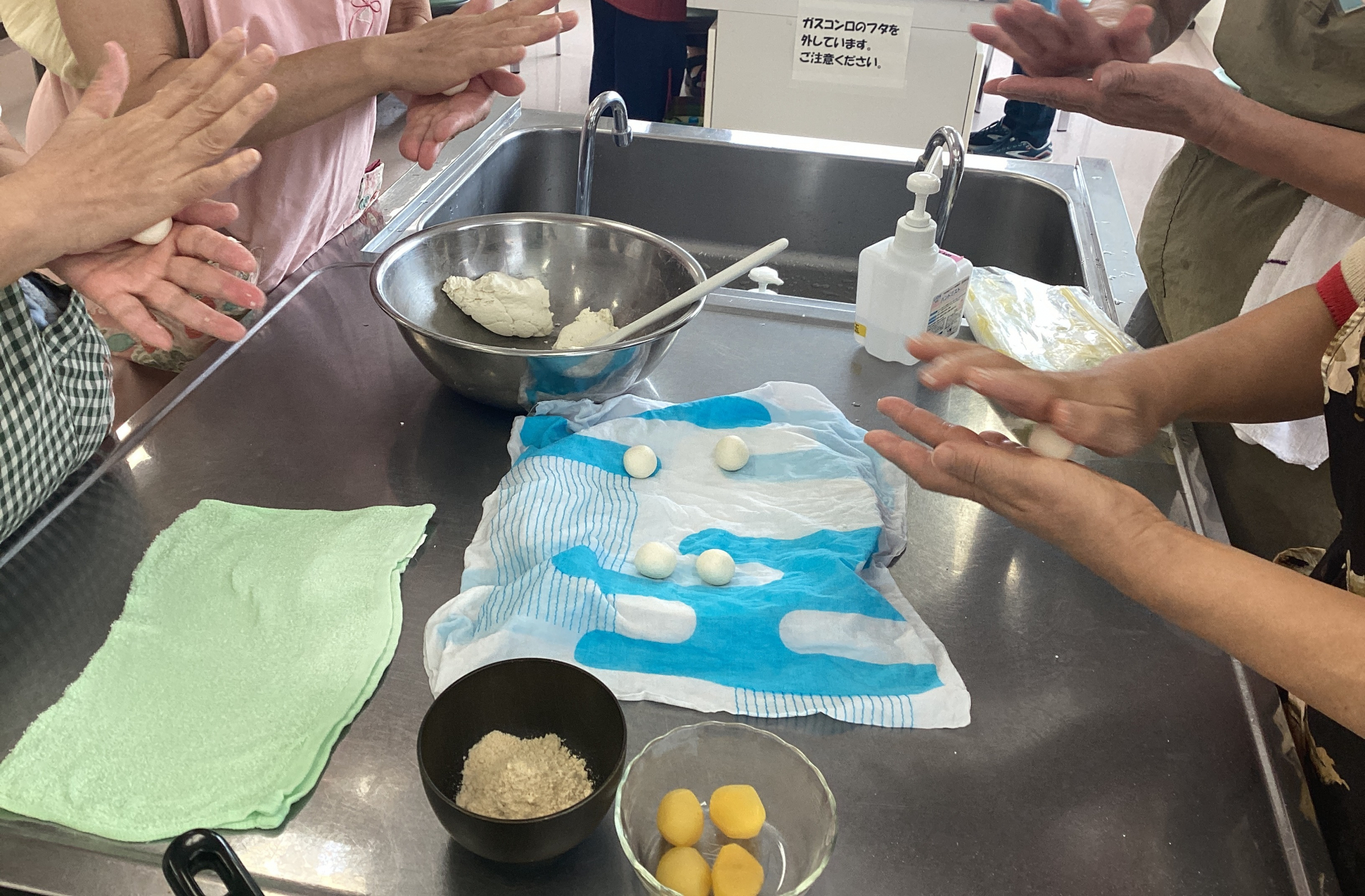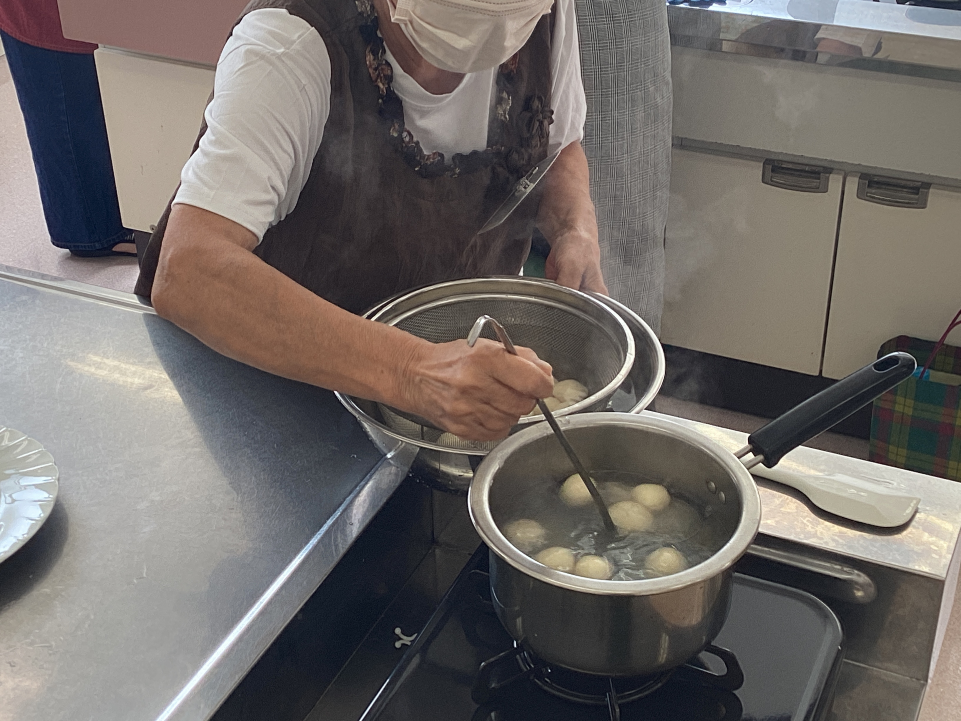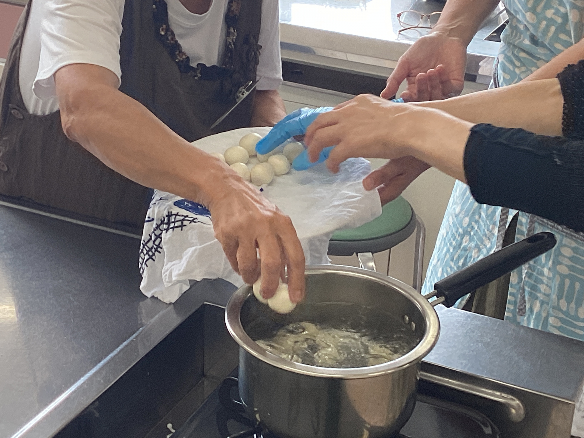本日和菓子教室2回目を開催しました。今日はお豆腐で作る「お月見団子」です。
