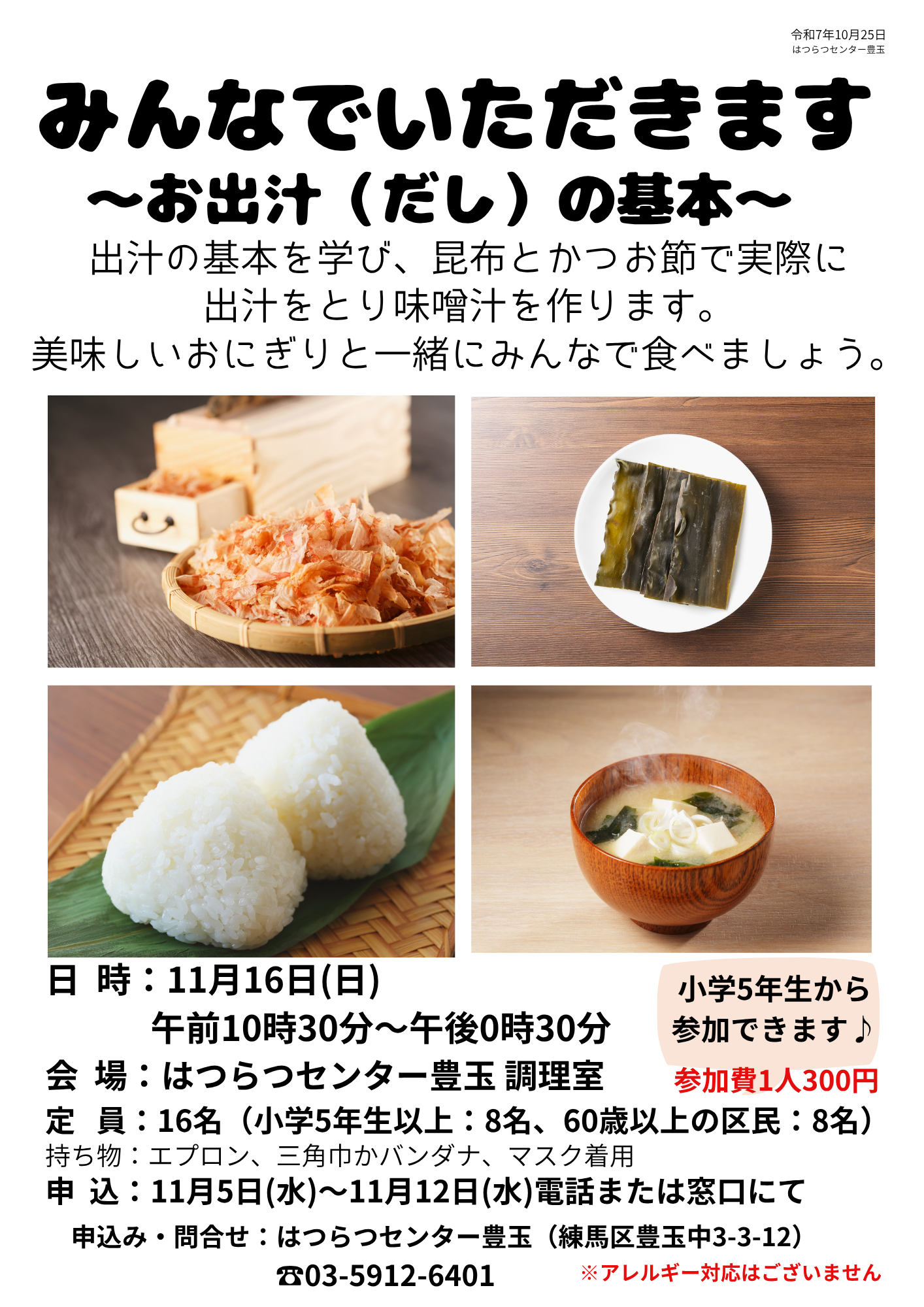 『みんなでいただきます~お出汁の基本~』を開催します。