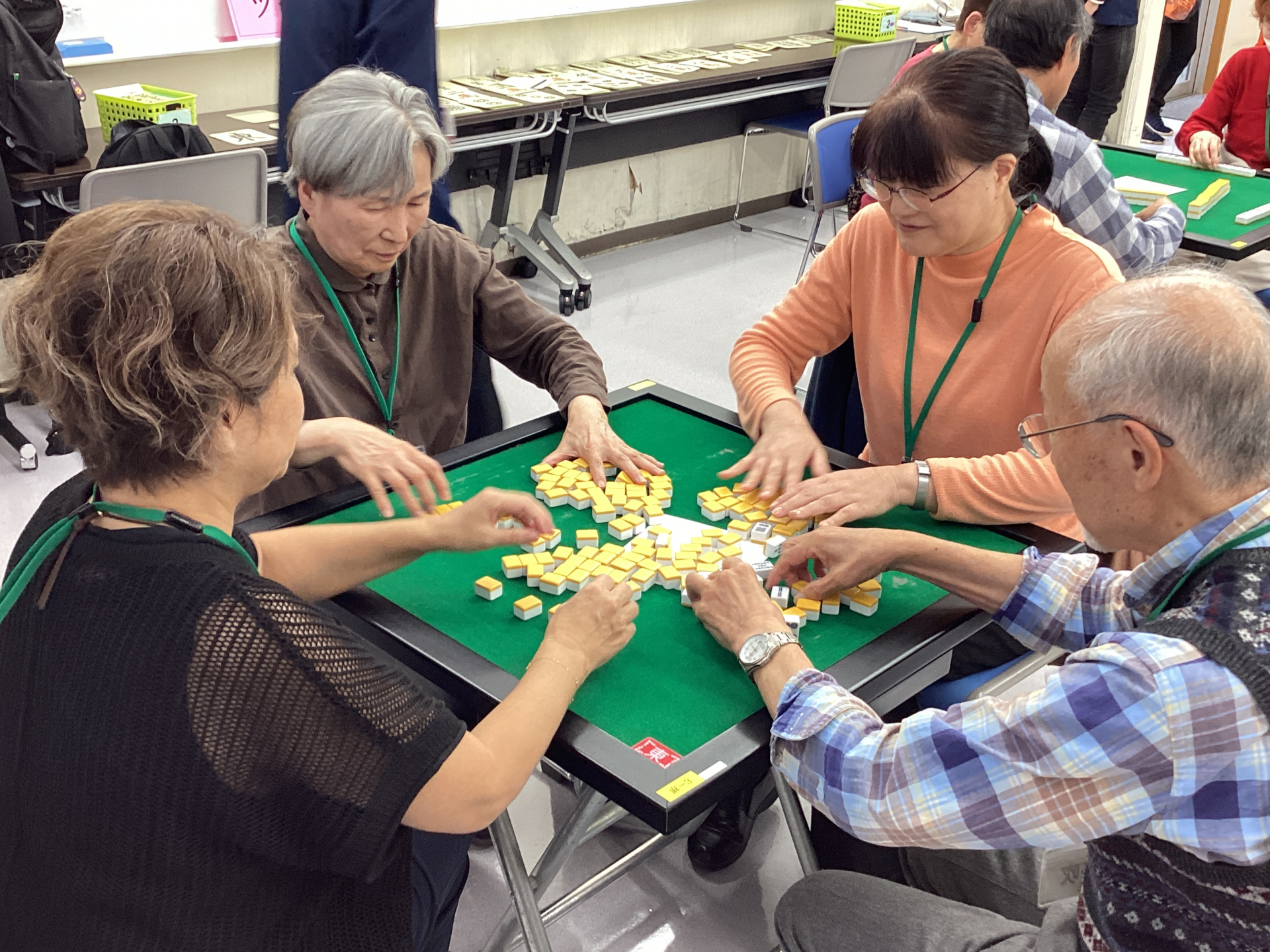数十年前に経験した方は、牌を触り 「ジャラジャラ」の音とともに記憶がよみがえり手さばきがお見事!!