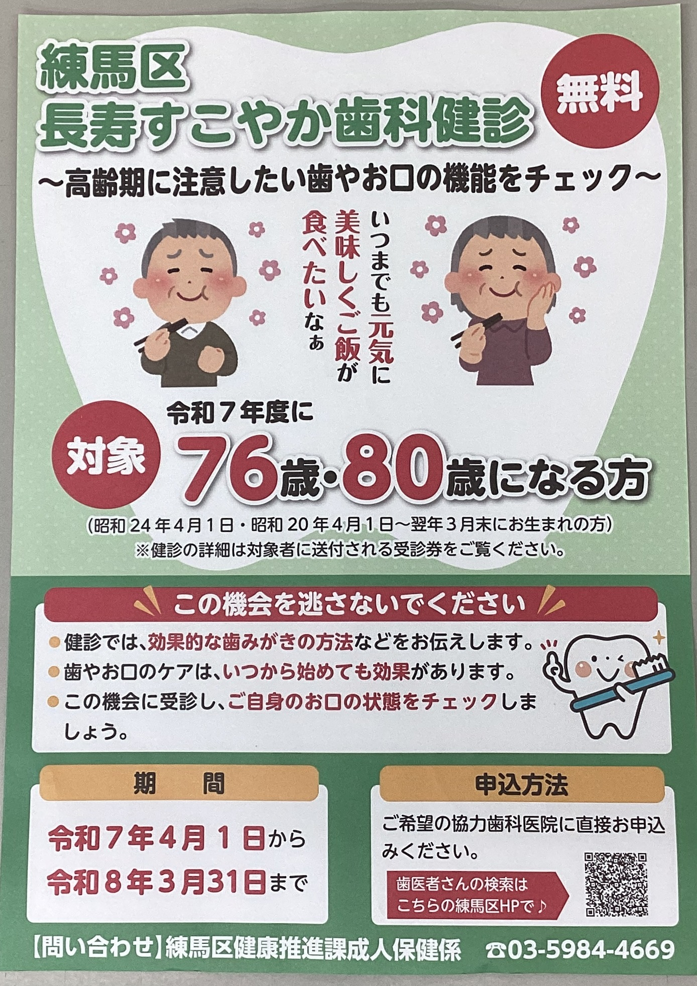いつまでも美味しく、そして、楽しく食事をとるために、口の中の健康を保ちましょう!