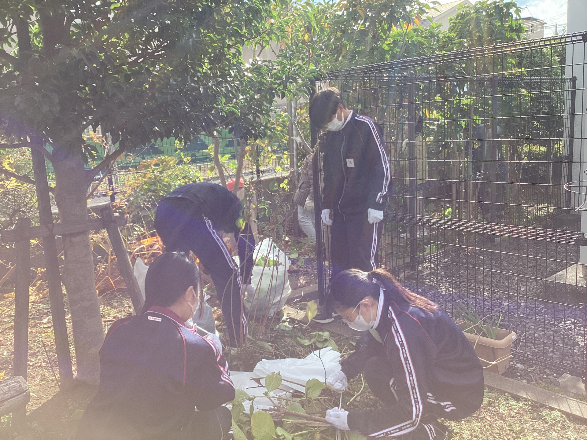 枯草取り、剪定、雑草とりをしました。枝を束ねるのは大変です。