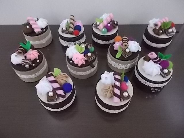 フェルトを使ってホイップクリームなどのトッピングを作って蓋の部分に盛り付けました。