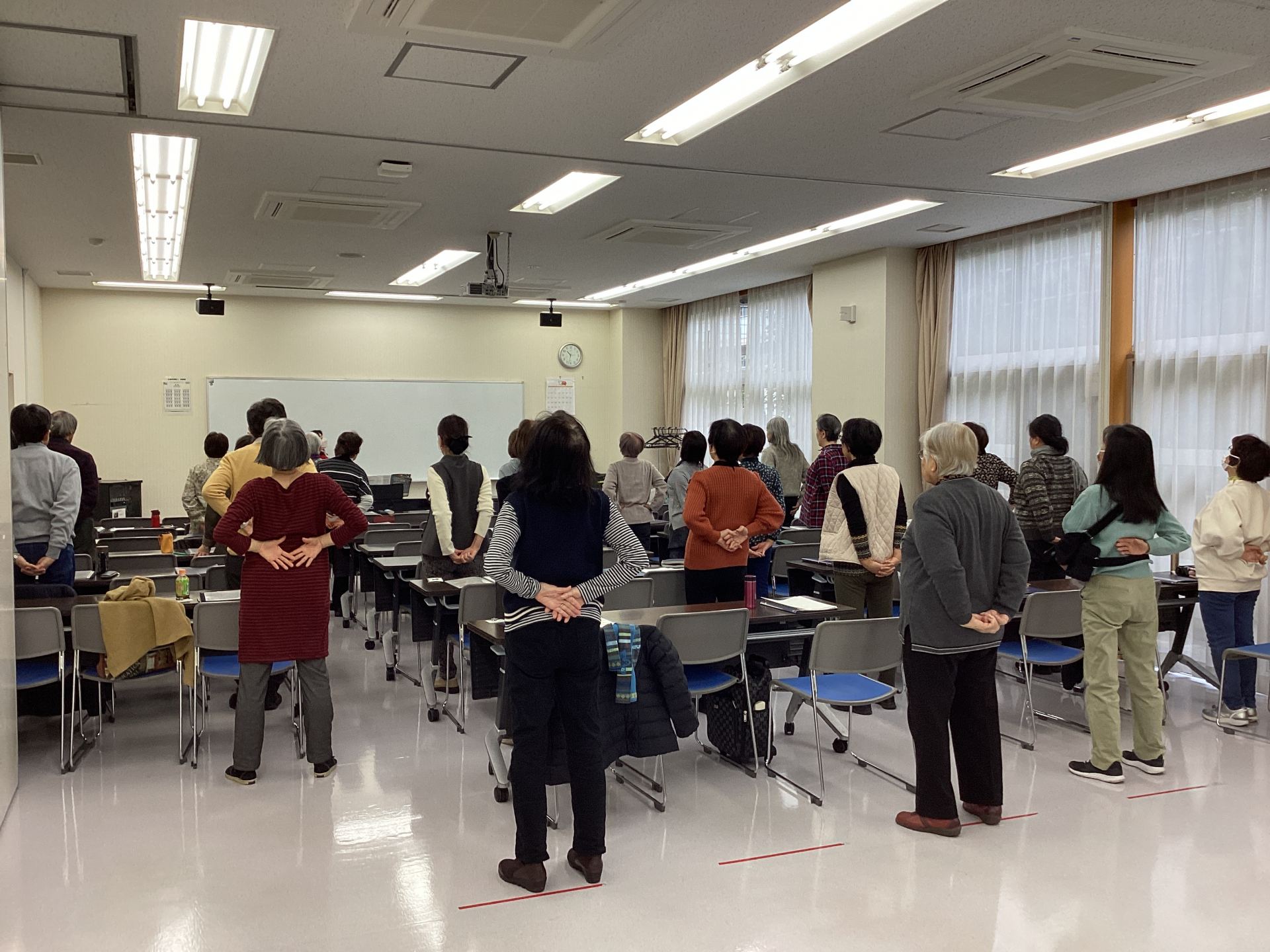 講師の発声練習をしっかりおこない、身体を温めて練習します。