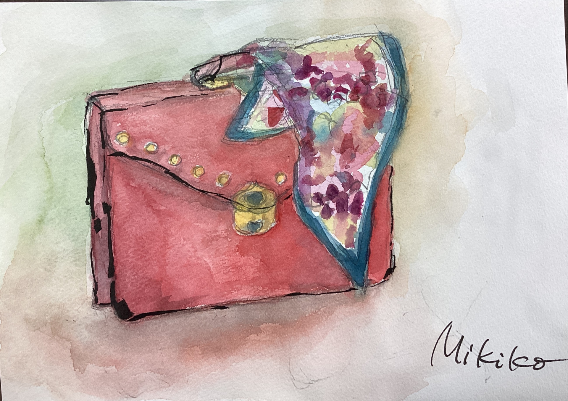 お気に入りのバックを描いて頂きました。もう少し大胆な構図で描けるとバックも生き生きしてきますね
