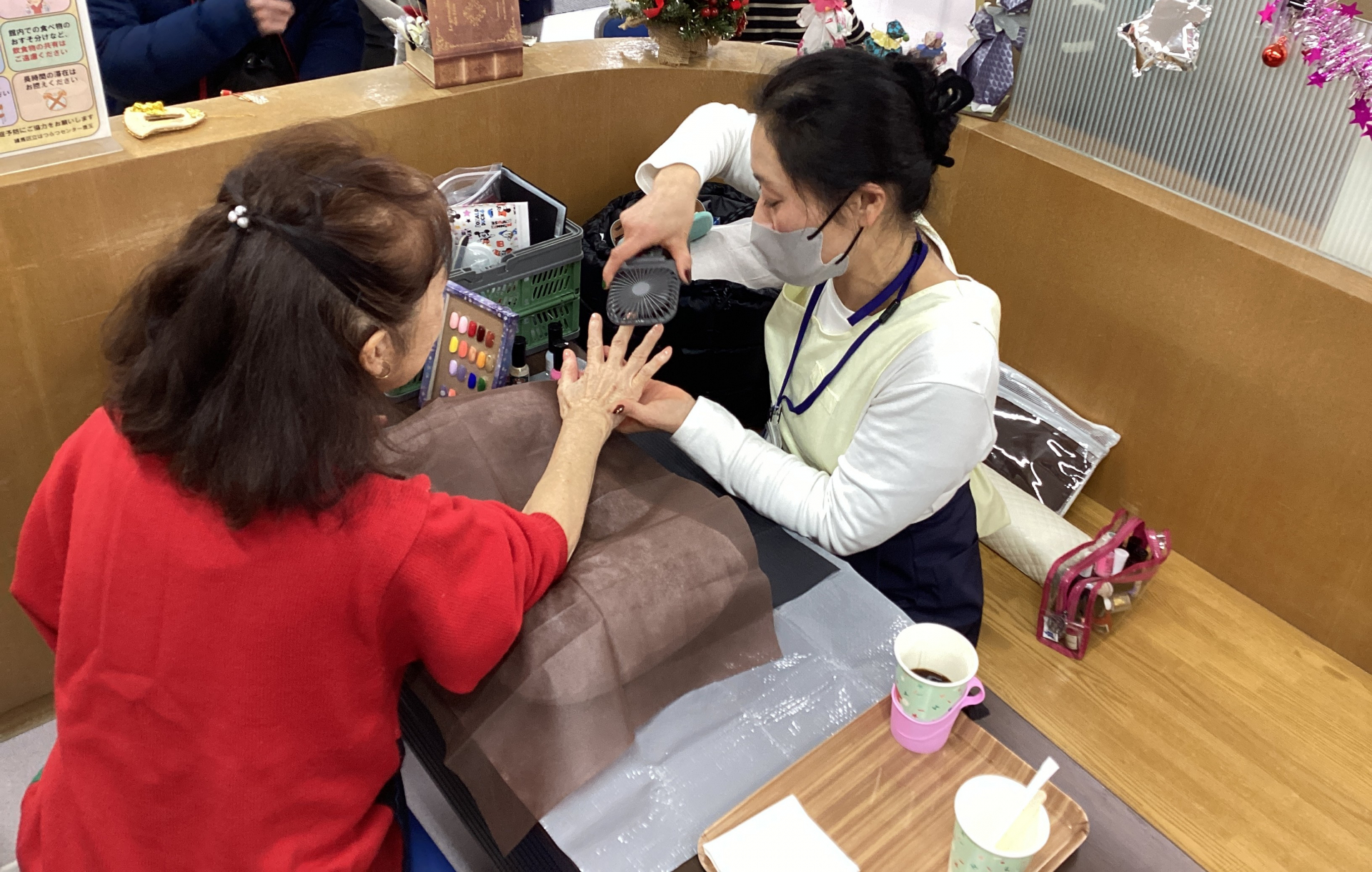 午後1時30分からのクリスマスコンサート開始と同時にネイルサロンもオープンしました。