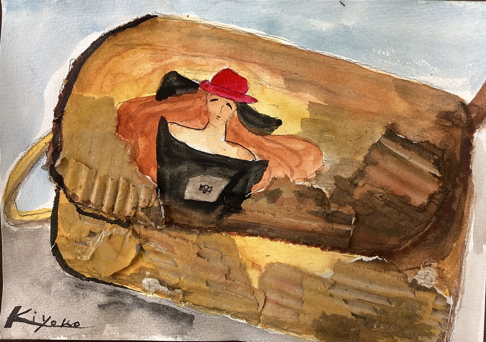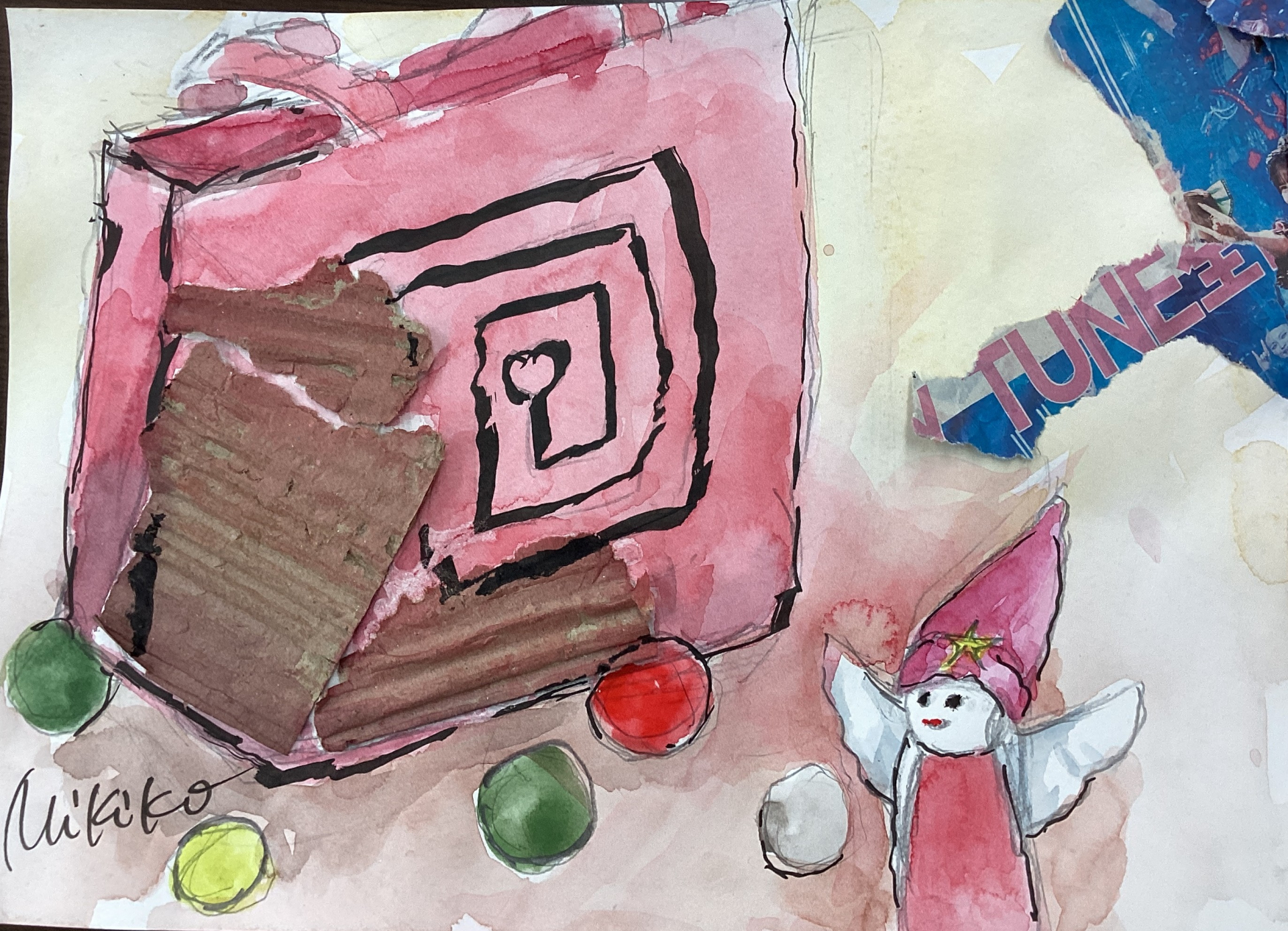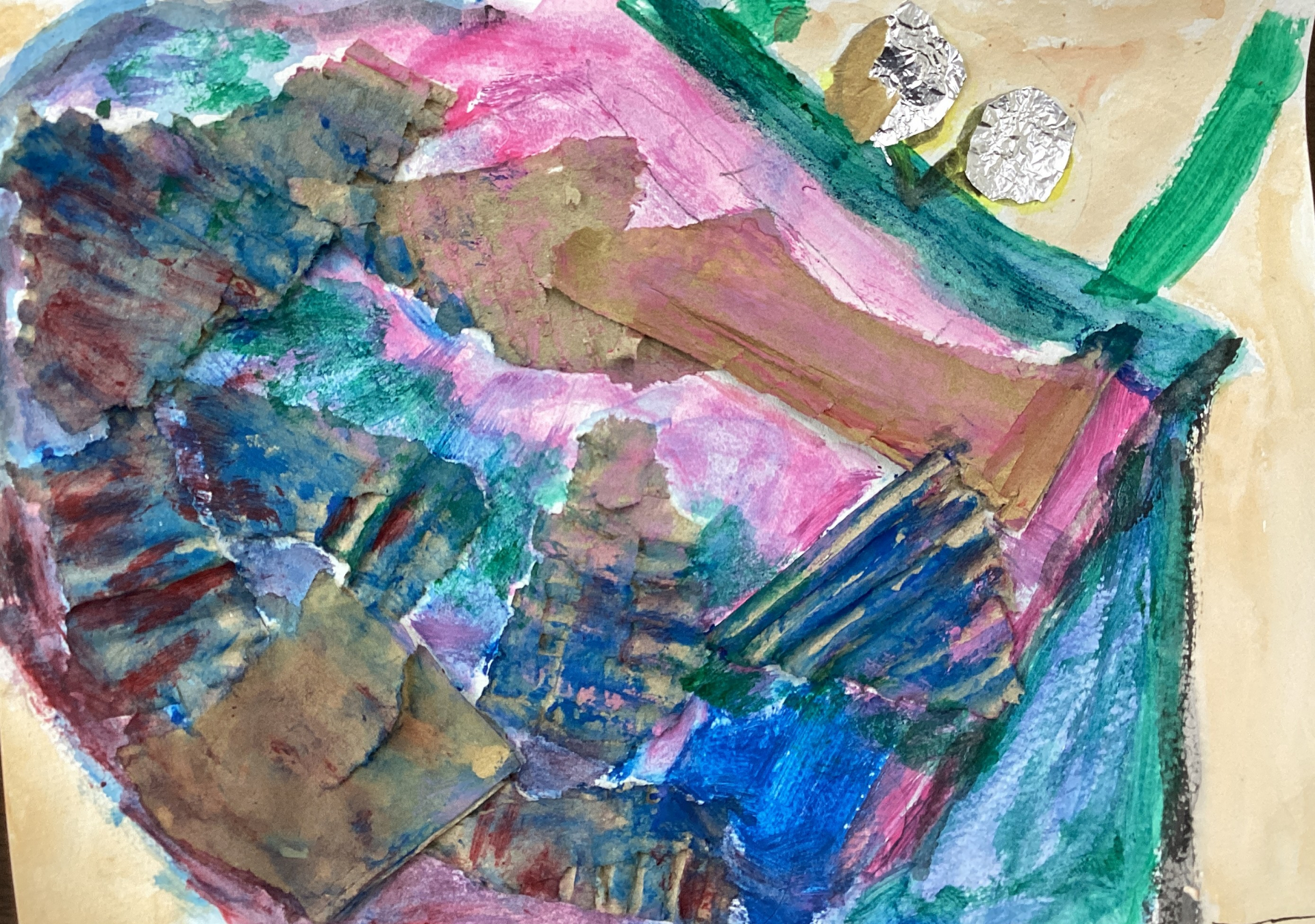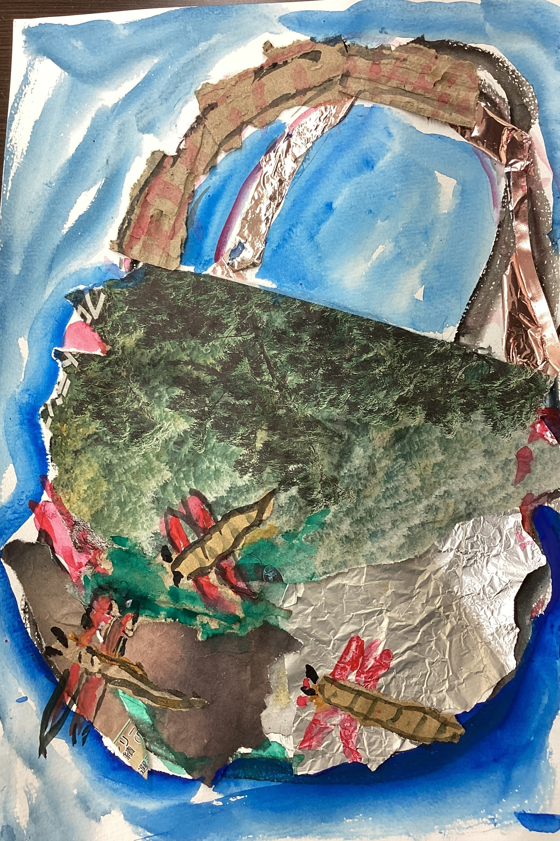 今回は、まず段ボールや新聞紙を台紙に貼ってから絵を描いて頂きました。