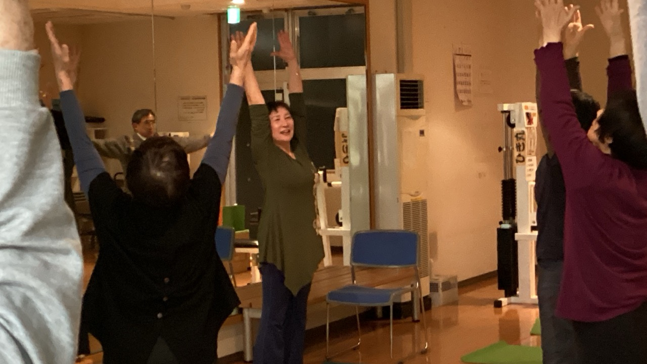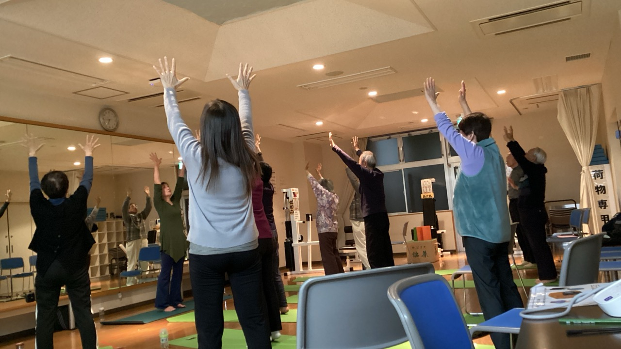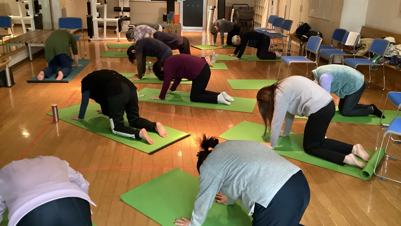 初回なので椅子も使用しましたが、後半はヨガマットで様々なポーズも体験。