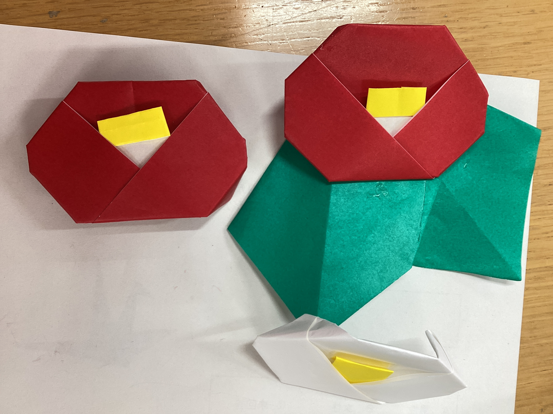 新年初のサロン折り紙を開催しました。椿やよく飛ぶ紙飛行機など思い思いの作品を折りました。