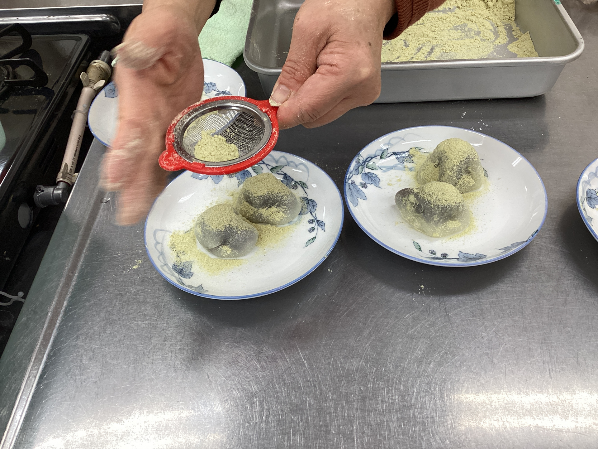 口に入れたらとろける様に柔らかいうぐいす餅の出来上がりです。