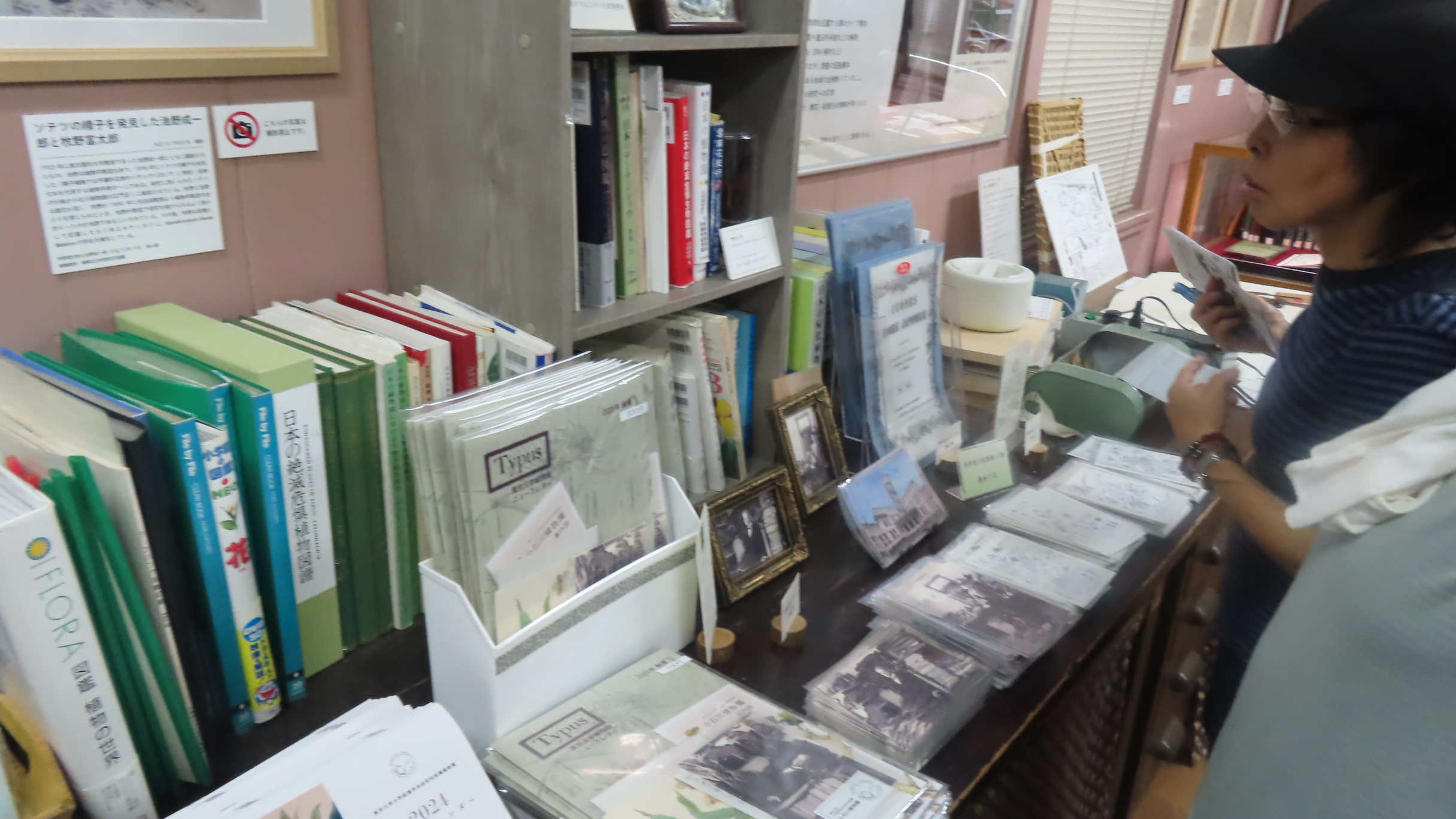 柴田記念館では、牧野教授のコーナーをじっくり見学し来年のカレンダーを購入される方も。