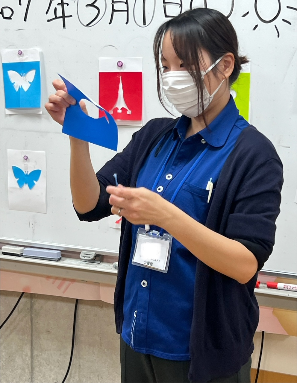 M職員が切り絵を披露してくれました!