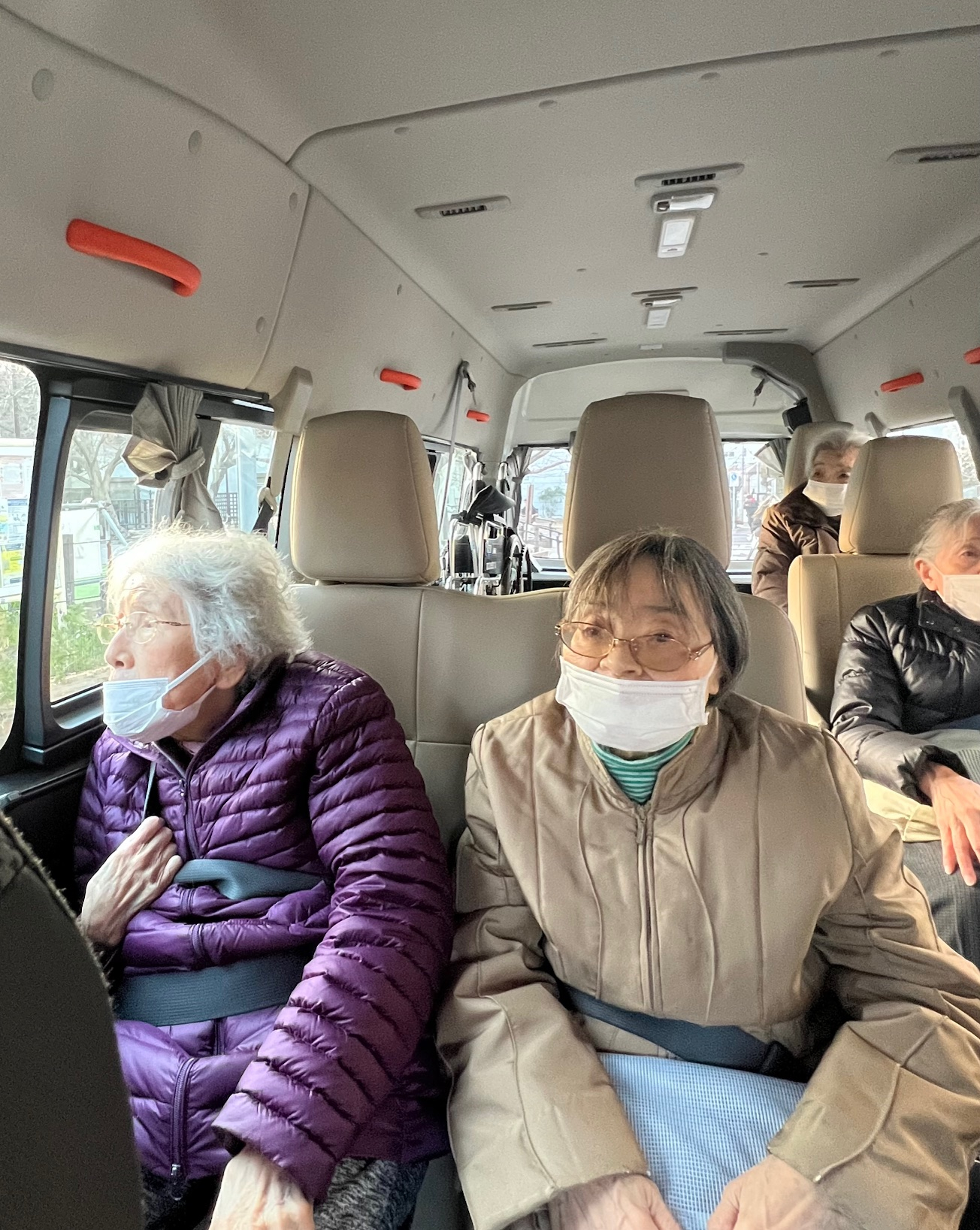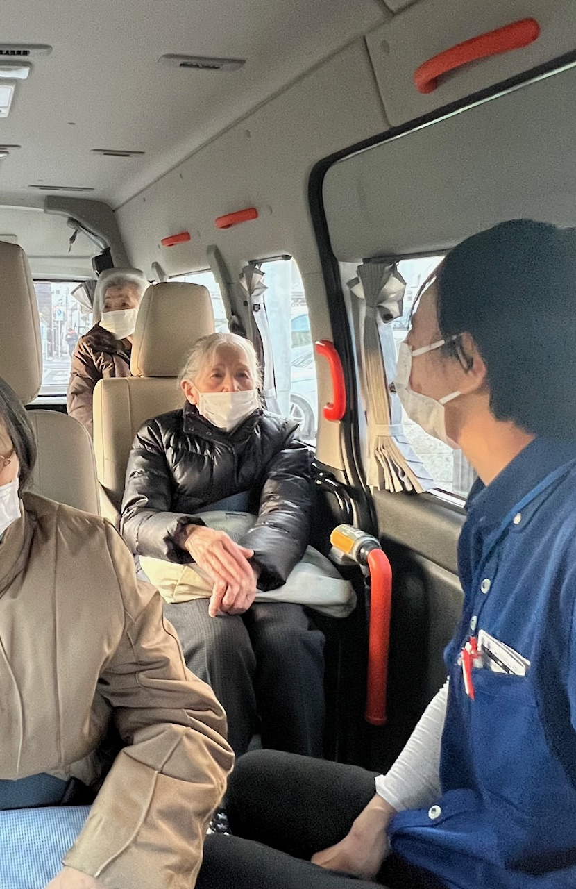 送迎車を停めて、車窓からお花見をしました。