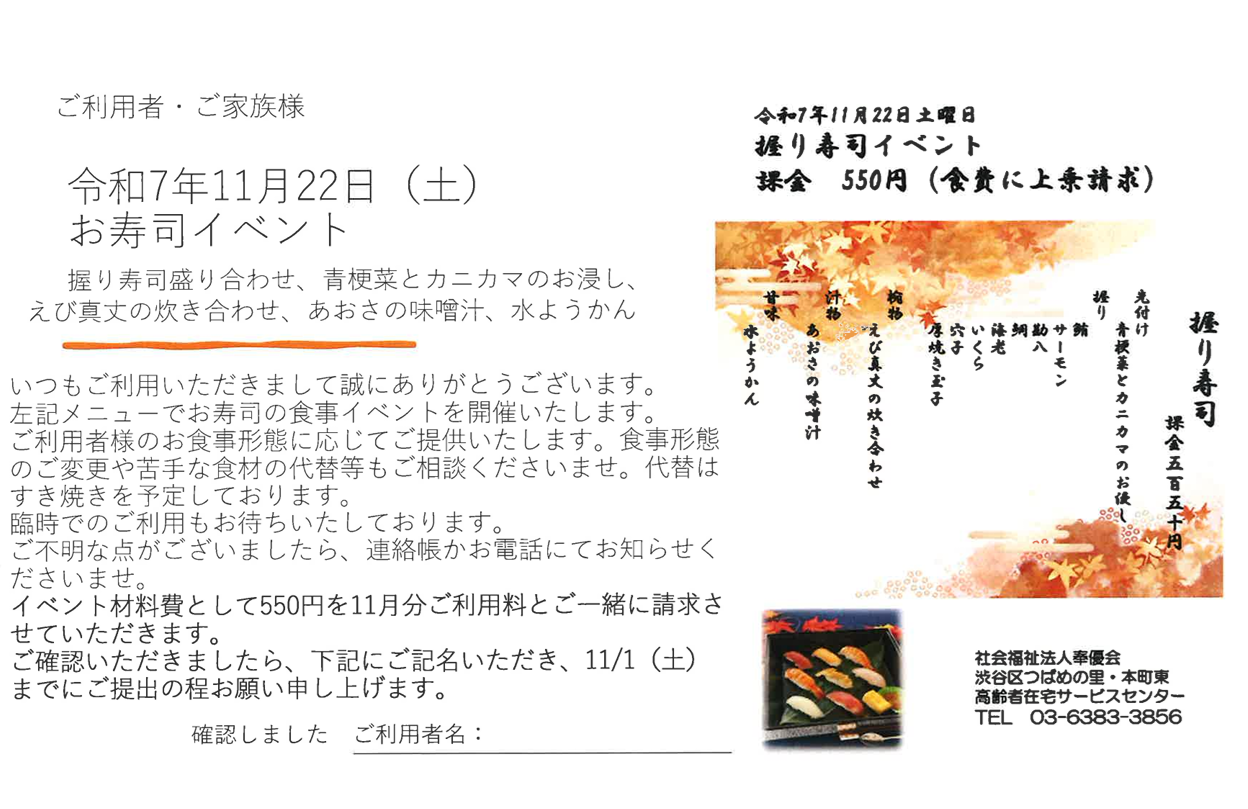 毎年恒例となりましたお寿司の特別イベントのお知らせです。