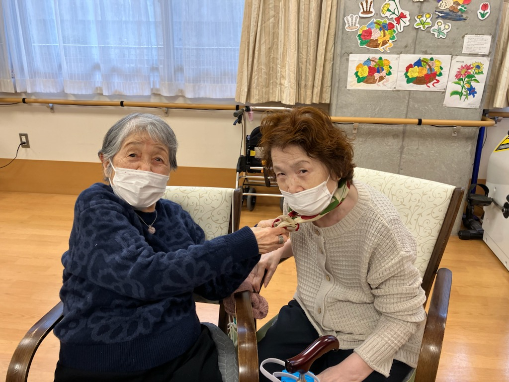 Yさん「あ~ん、スカーフがうまく結べないのよ」