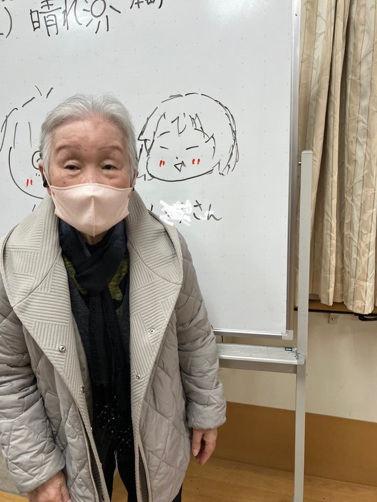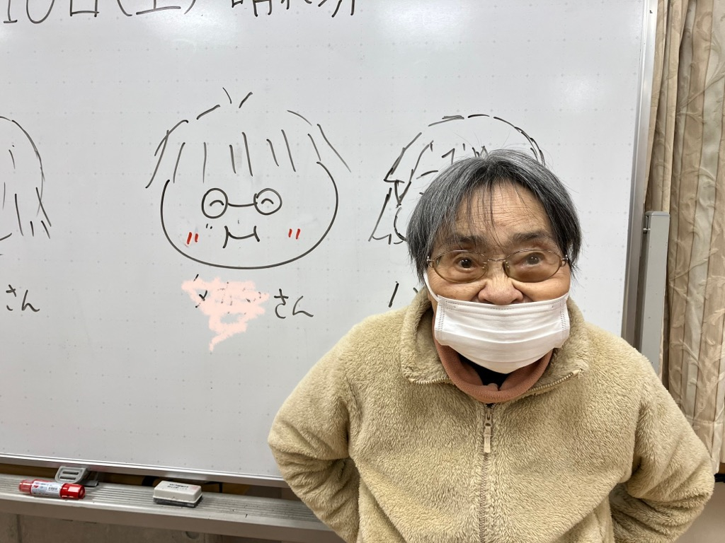 「利用者さんの似顔絵で~す。さてどなたでしょう?」と急にクイズ!