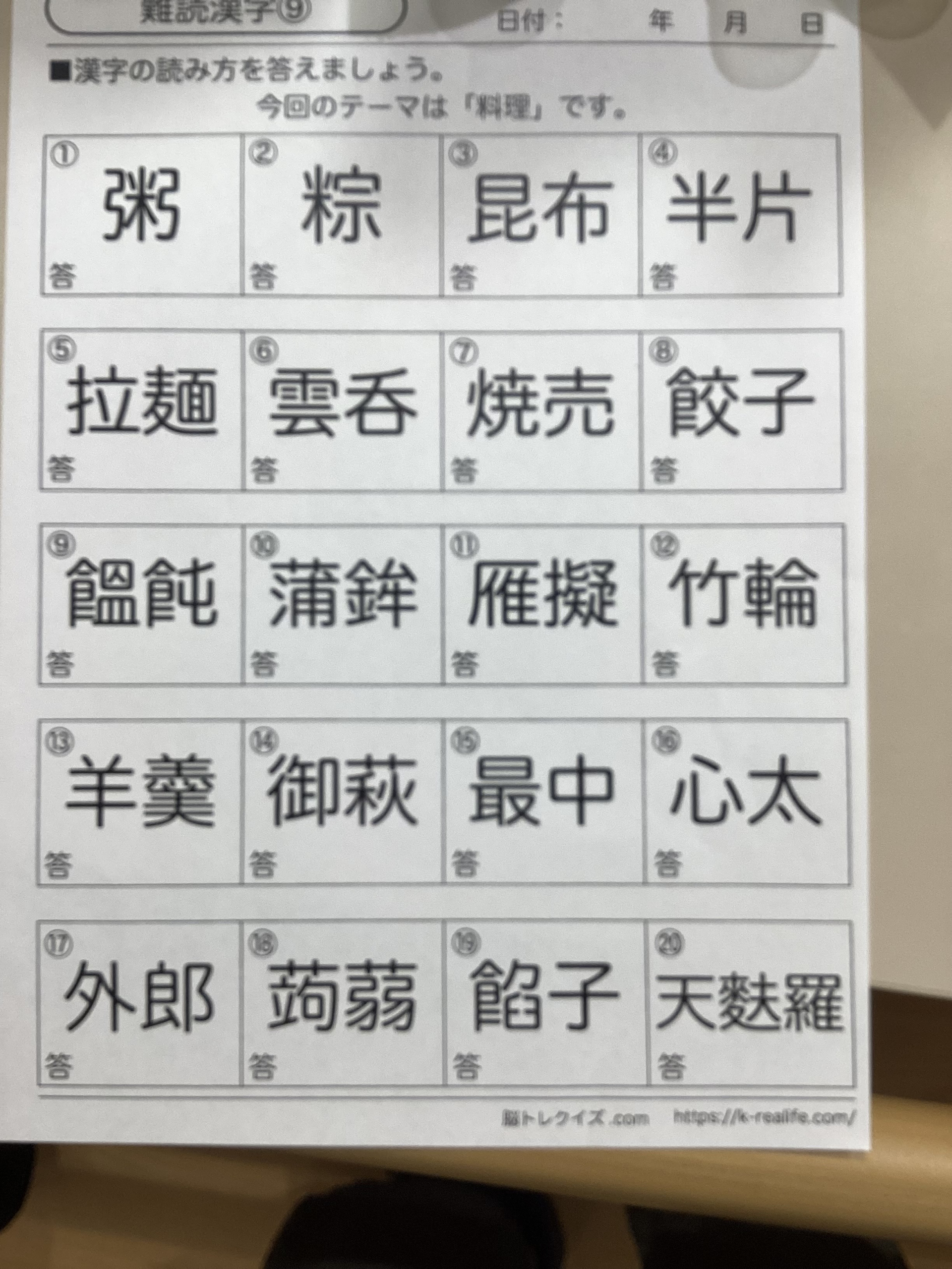 皆さんデイサービスに到着されると、ご自身の席に着くなり今日の脳トレを解かれます。