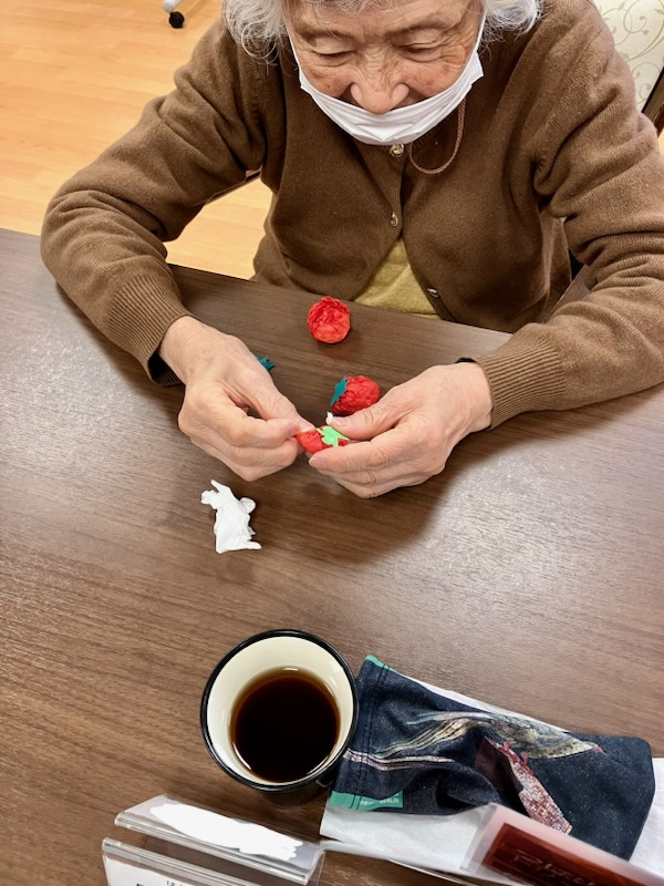 「こうやるんだよ」と周りの方へのフォローもあったり、苦手な方は職員と一緒に作成していました。