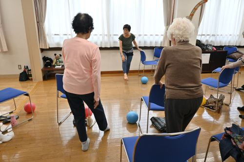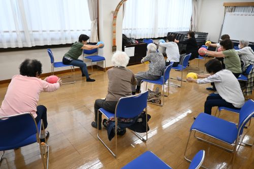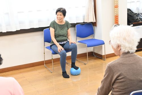 座ったままのストレッチが主ですが、この日はやわらかいボールも利用。普段使っていない筋肉を使う運動を終えた後は、やり終えた充実感から皆さん笑顔を浮かべていました。