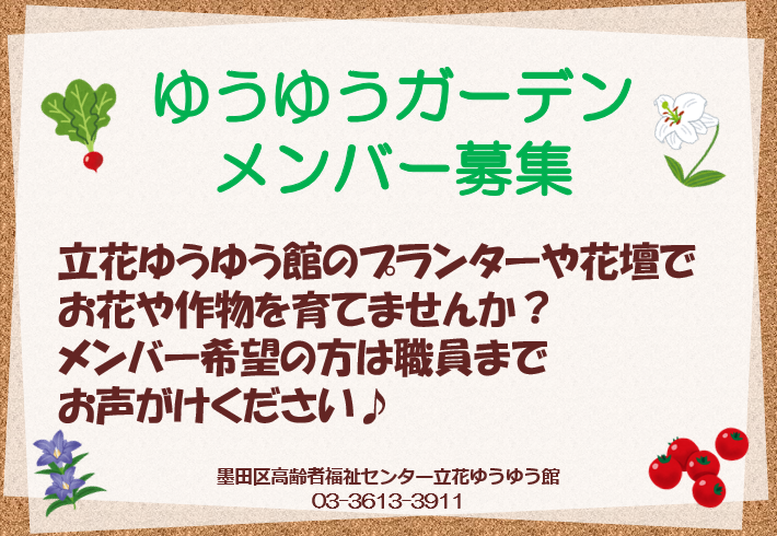 立花ゆうゆう館「ゆうゆうガーデン」募集中です