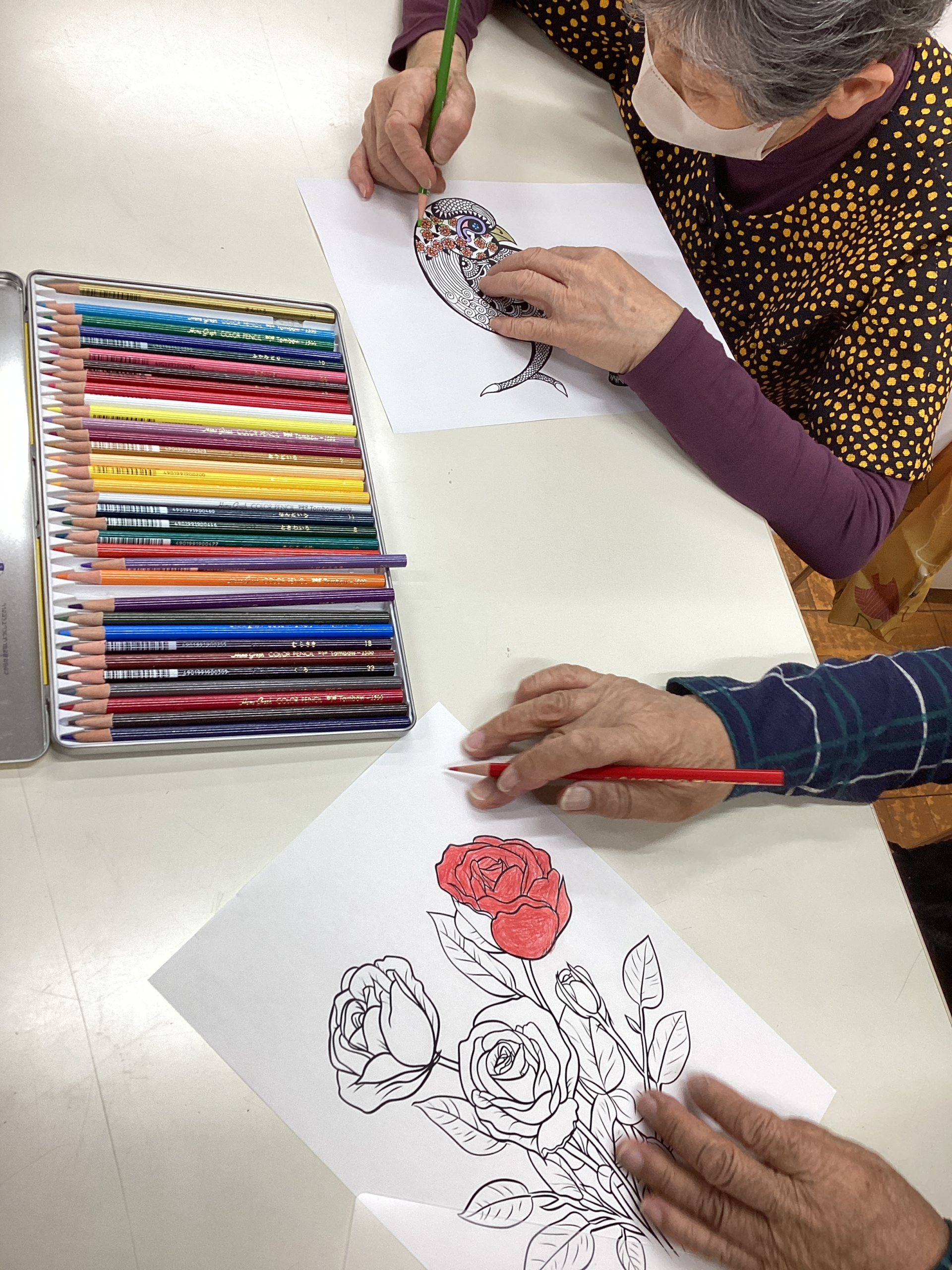 今週はぬり絵で来週はちぎり絵にしようかしら~という選択もしていただけます。