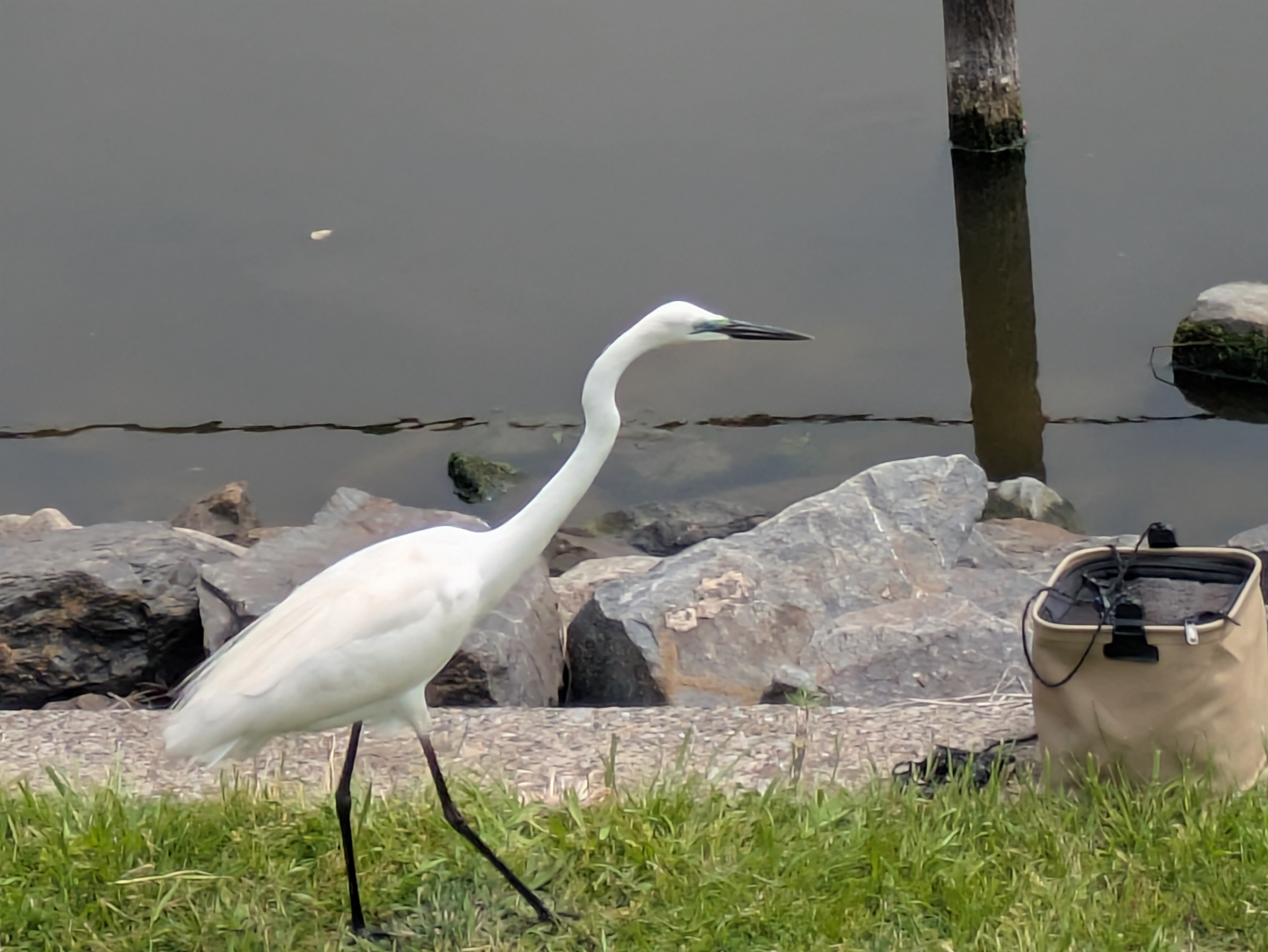 なんと、この鳥、釣りあげたハゼを目当てにおう待機しているそうです。