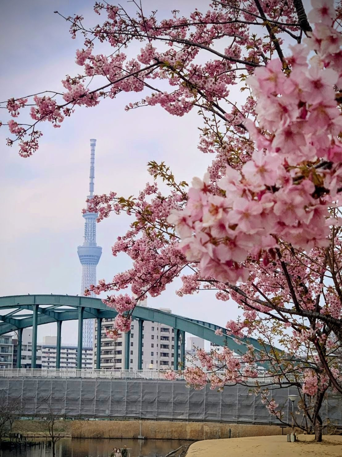 旧中川の遊歩道、寒桜がきれいです