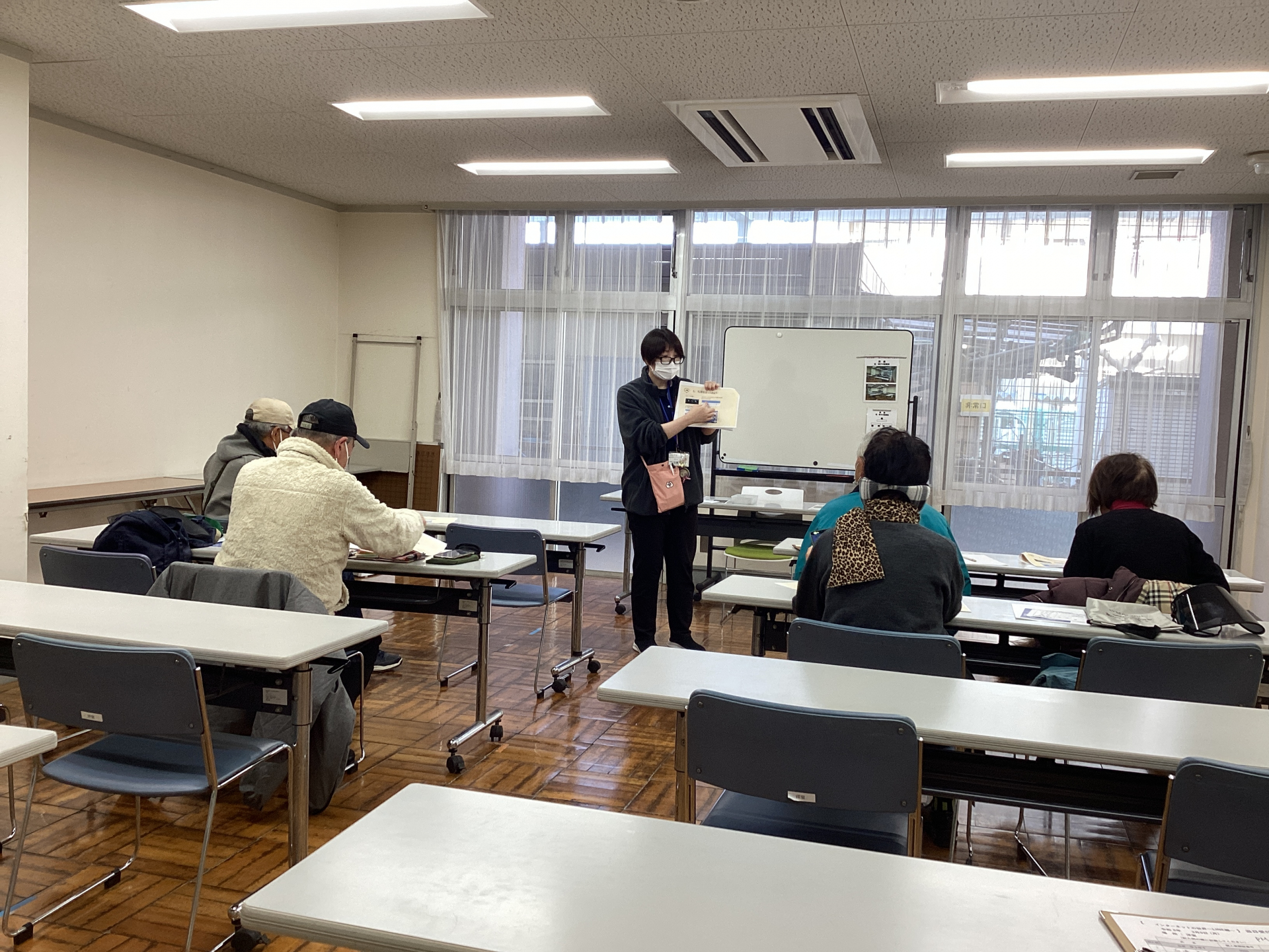 写真の送り方やスタンプの送り方、keepメモの使い方等々、LINEの使い方の基本を職員手作りの資料を見ながら一緒に学んでいきます。
