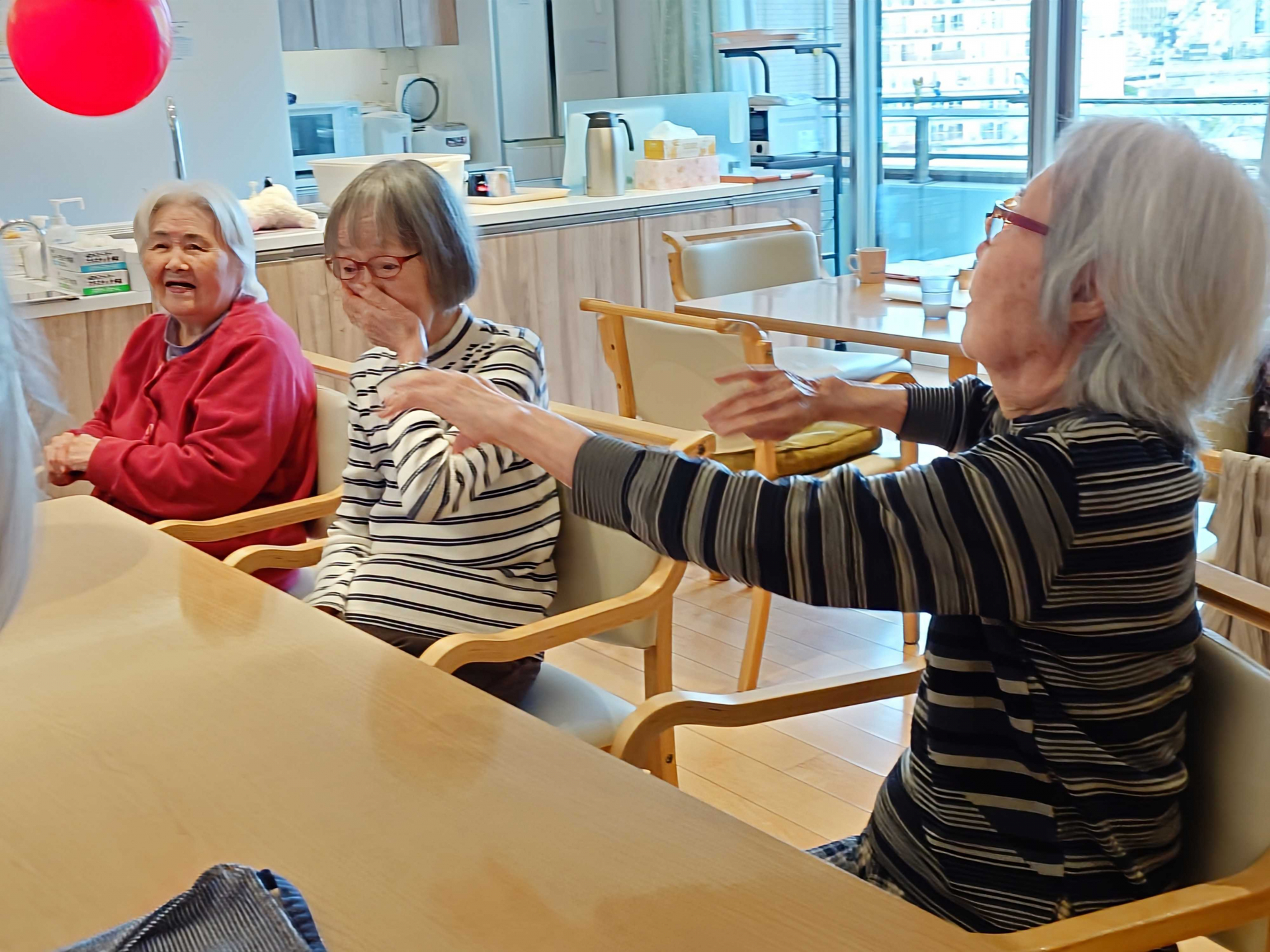 2025.02.07 グループホーム 風船バレー Tweet シェアする 先日久しぶりに風船バレーをしました ボールが飛んでくると無意識に体が動くので良い運動です 優っくりグループホーム中央湊 前の記事 2025.02.08 グループホーム 今日はお弁当の日 次の記事 2025.02.06 グループホーム 七並べ 一覧へ戻る