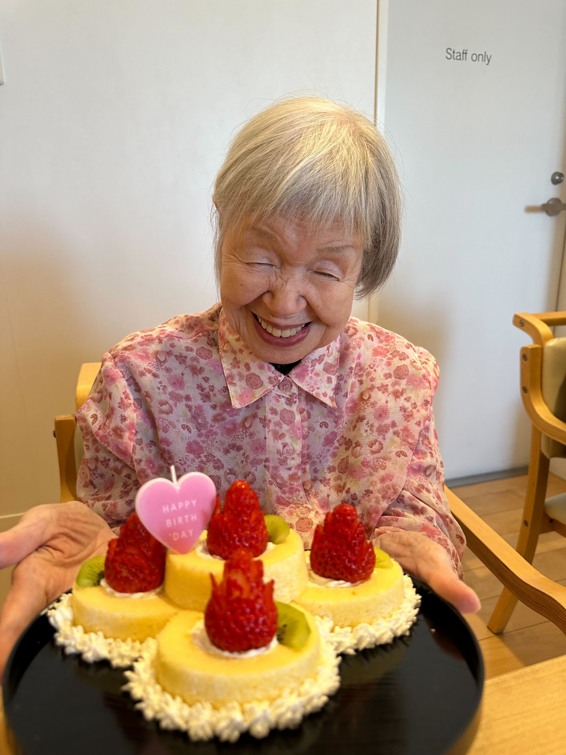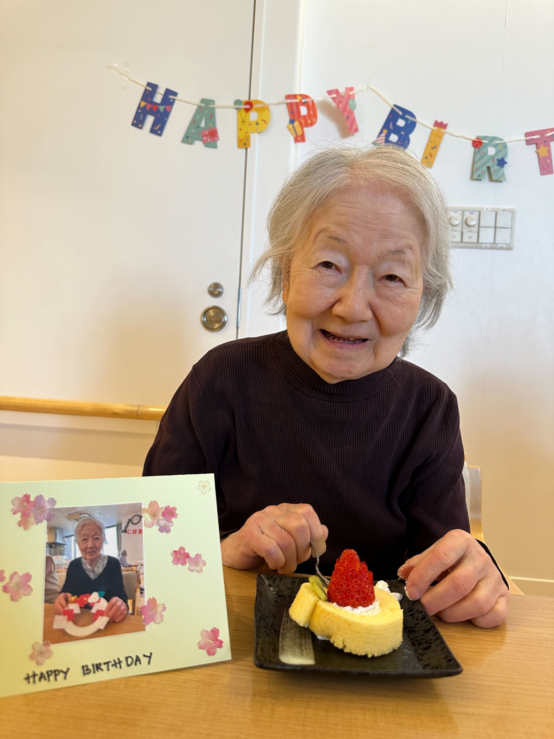 2月の誕生日ケーキはスタッフがデコレーションを手作りしました。