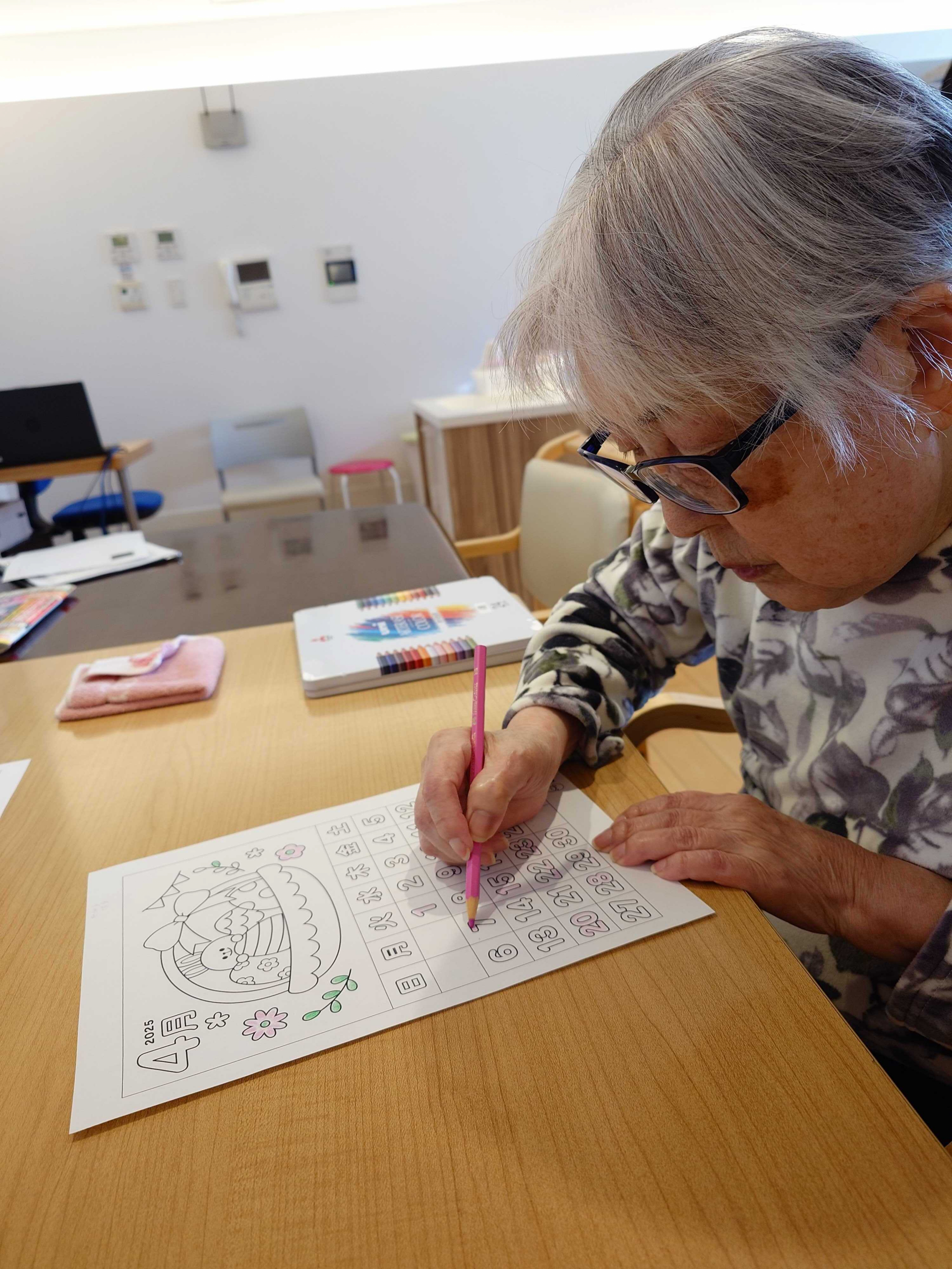 2025.04.06 グループホーム みんなでぬりえ Tweet シェアする 遅番で出勤すると みなさまぬりえに取り組んでいました 優っくりグループホーム中央湊 前の記事 2025.04.07 グループホーム 夕食後のお時間は 次の記事 2025.04.05 グループホーム お花見② 一覧へ戻る