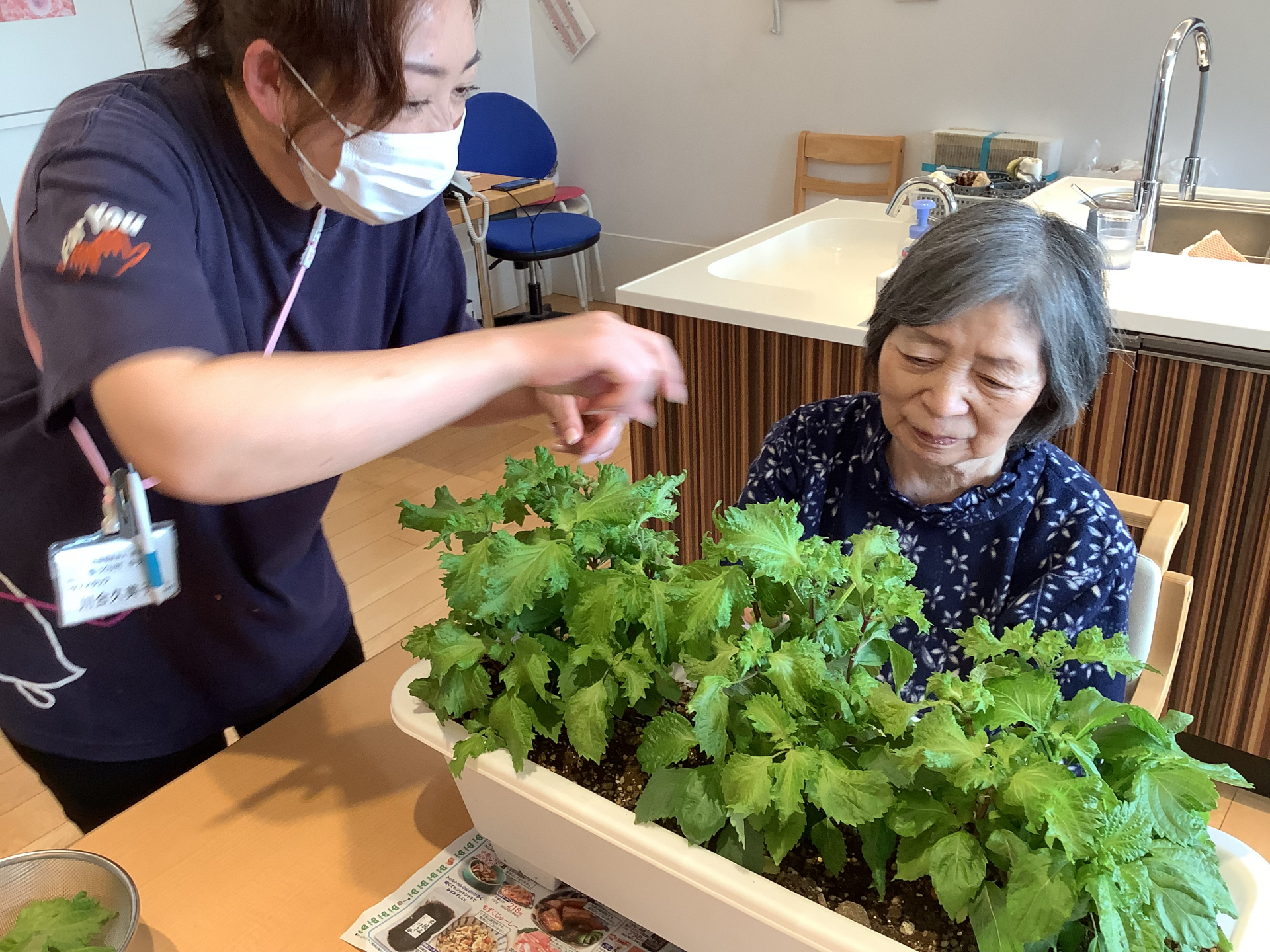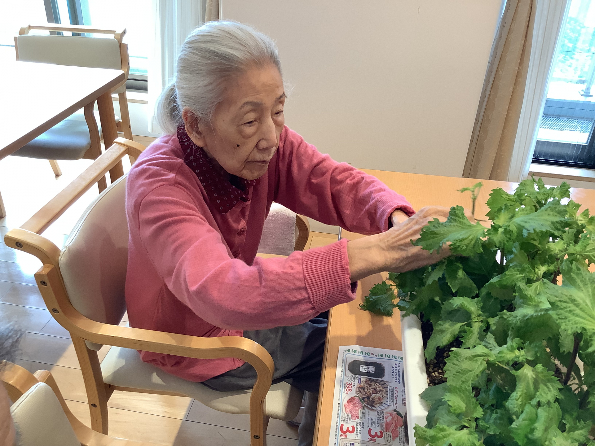 先日、小規模さんから分けて頂いた大葉がどんどん増殖しております。なので、皆さまで収穫です。