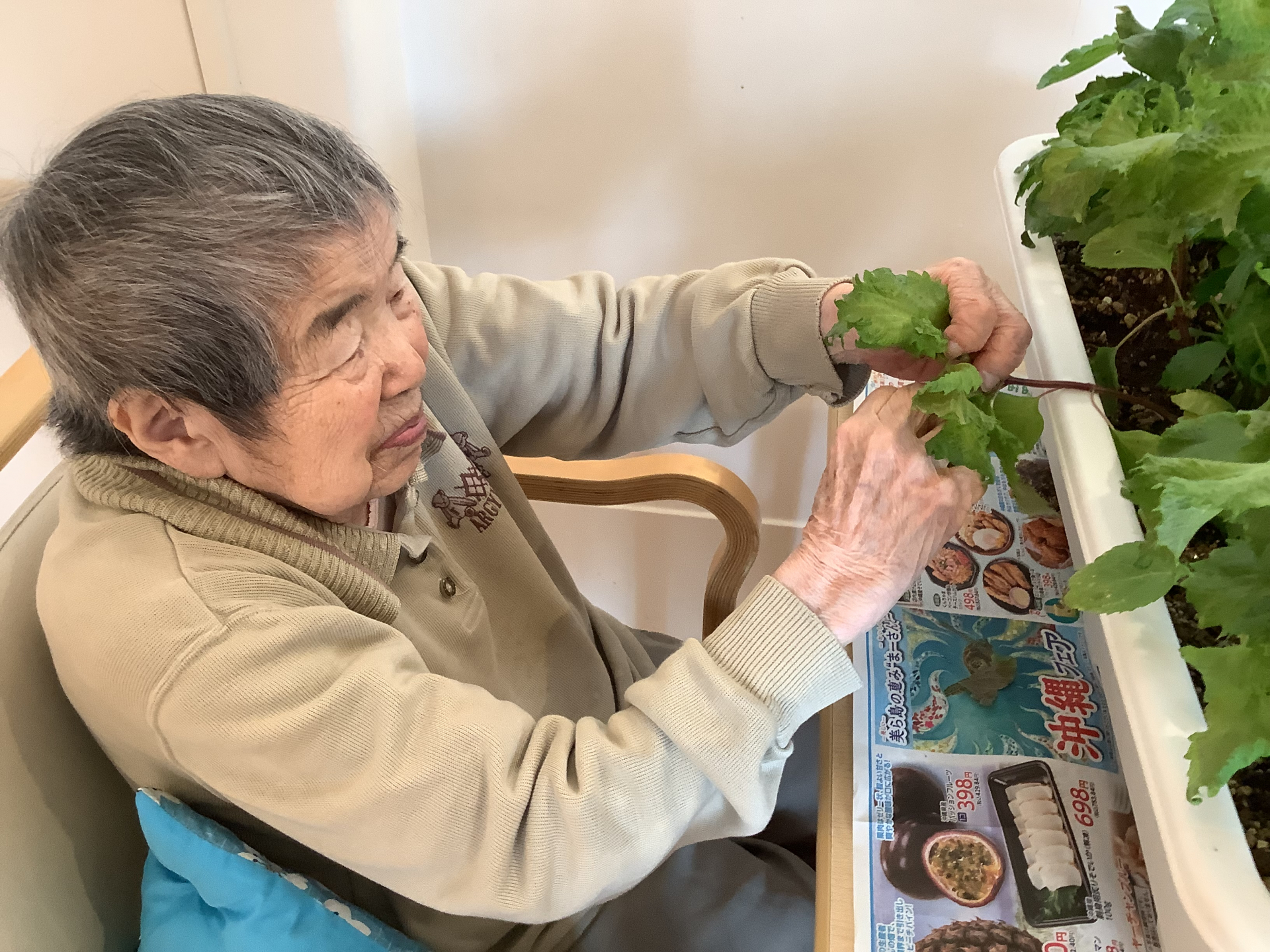 新鮮な葉を選んで、収穫して頂き、今日の昼食の天ぷらになる予定です。