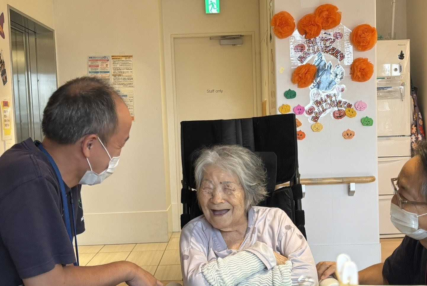 食後のひとやすみ時間のご利用者様と会話のご様子です♪