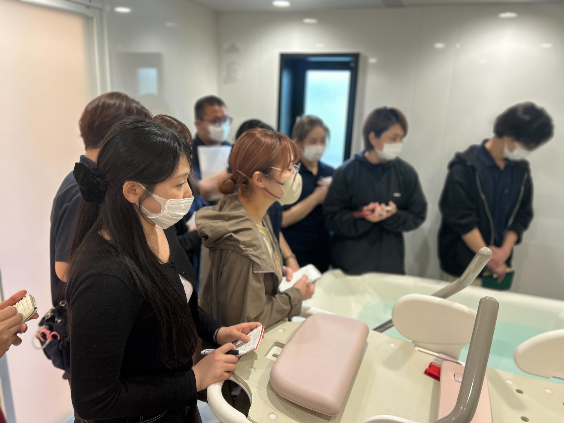 ふと、フロアを見に行くと、職員さんたちが自主的に集まり、「みんなで入浴介助のおさらいをしていました!」とにこにこ報告。