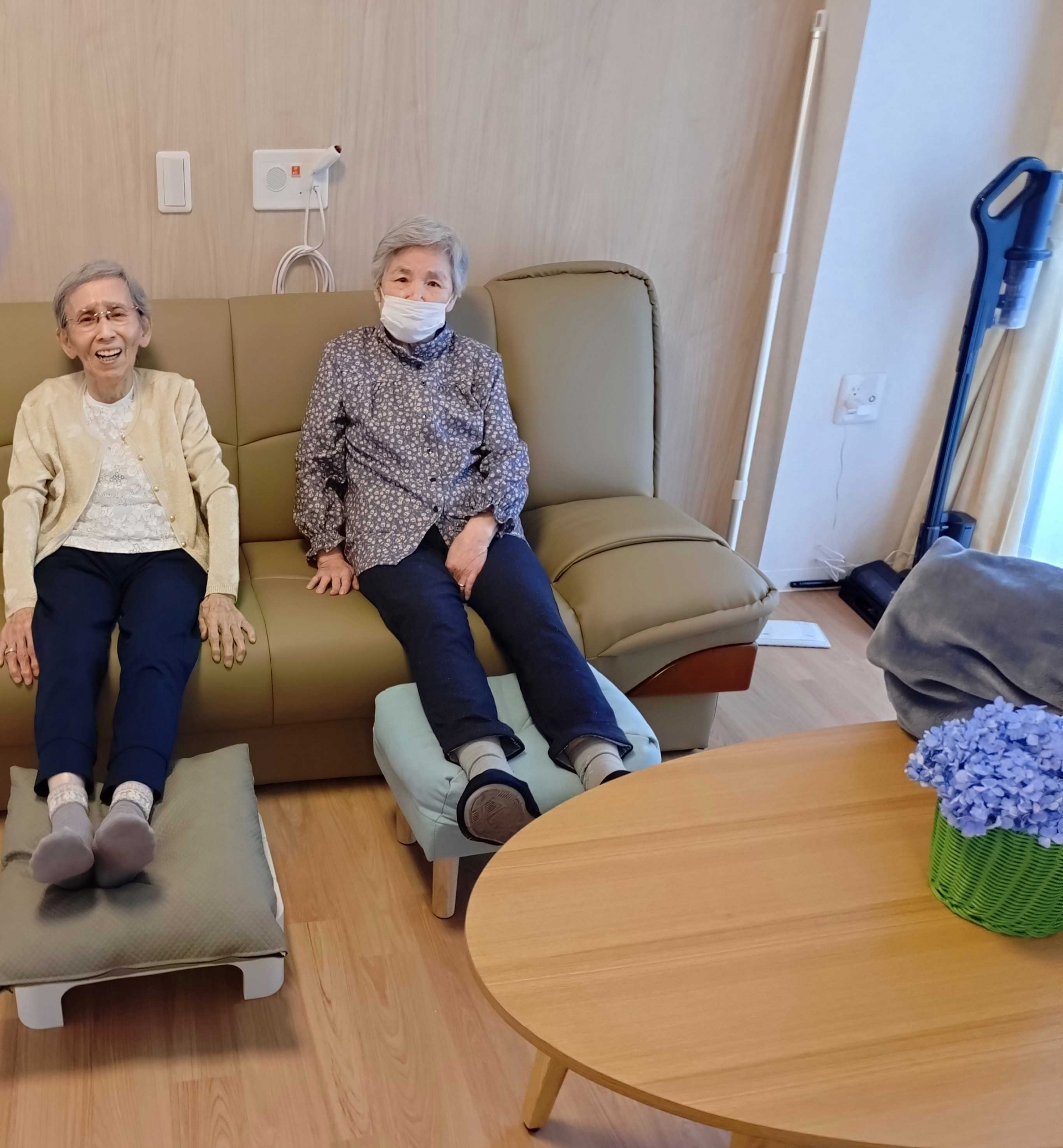 お食事の前や午後の時間に、皆さんで軽い運動やストレッチ、休息の時間を設けています。