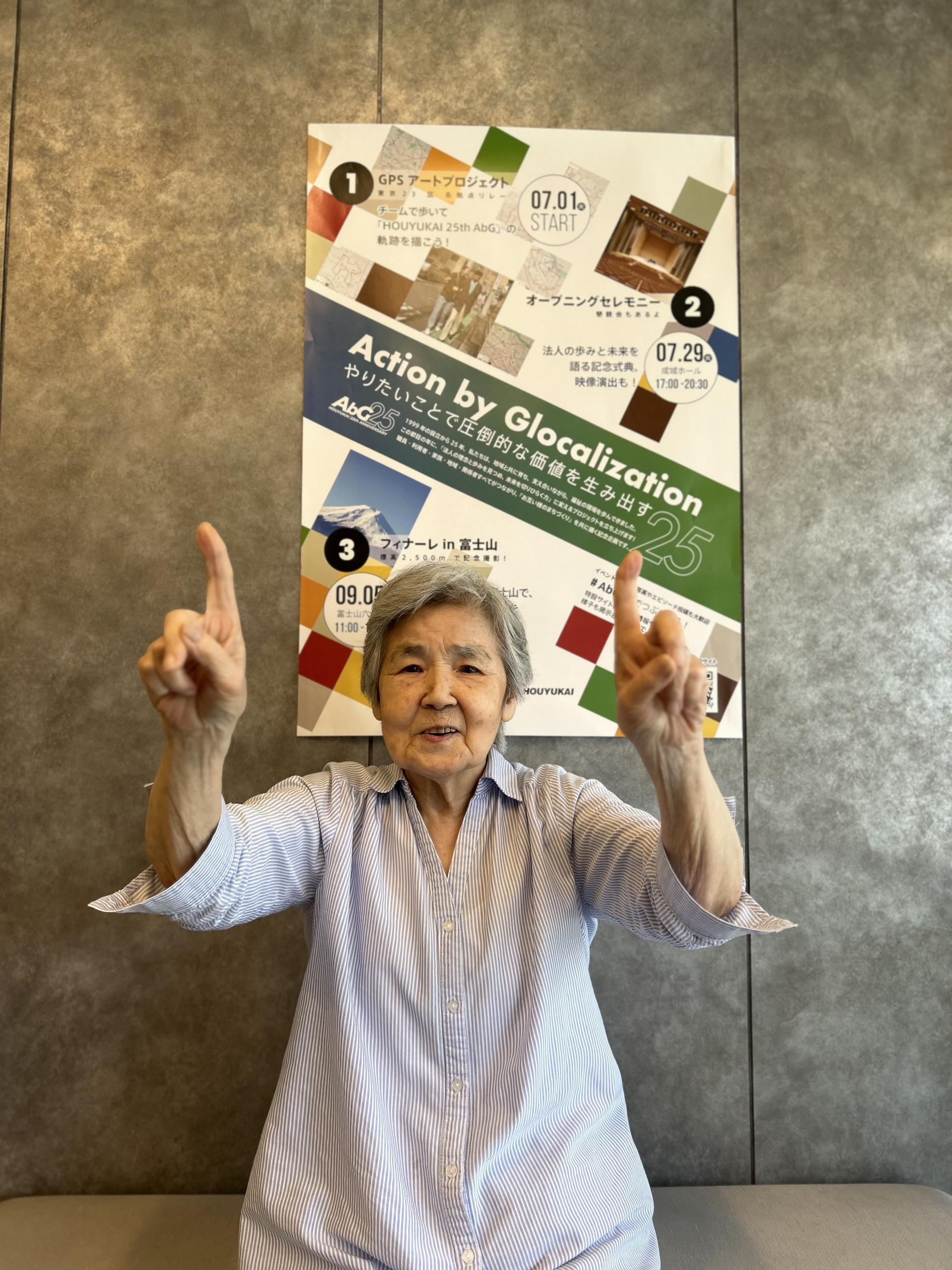 このたび、25周年を記念した新しいポスターが完成し、ご利用者様と一緒に記念撮影を行いました。